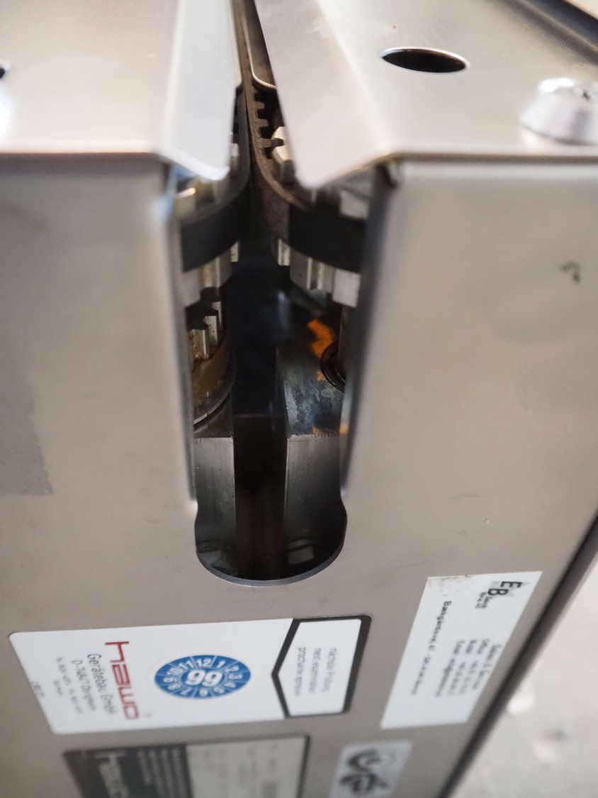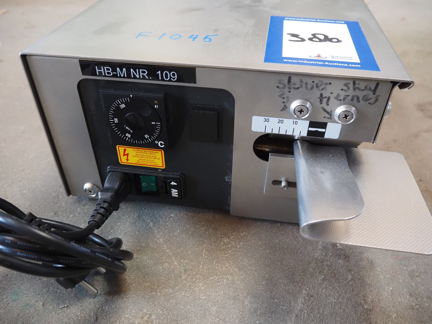 Hawo Gerätebau GmbH s/s rotary sealing unit, type: HM 500 DEL, serial number: 964304, 220/240 V, 50 Hz, 0.5 kW, weight: 15 Kg, dimensions: 600 mm x 300 mm x 150 mm.