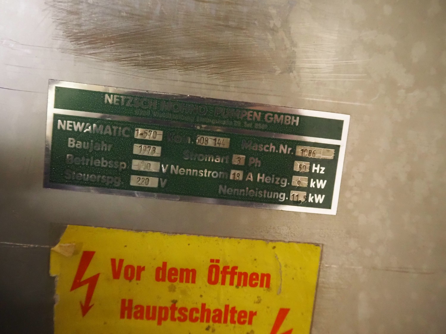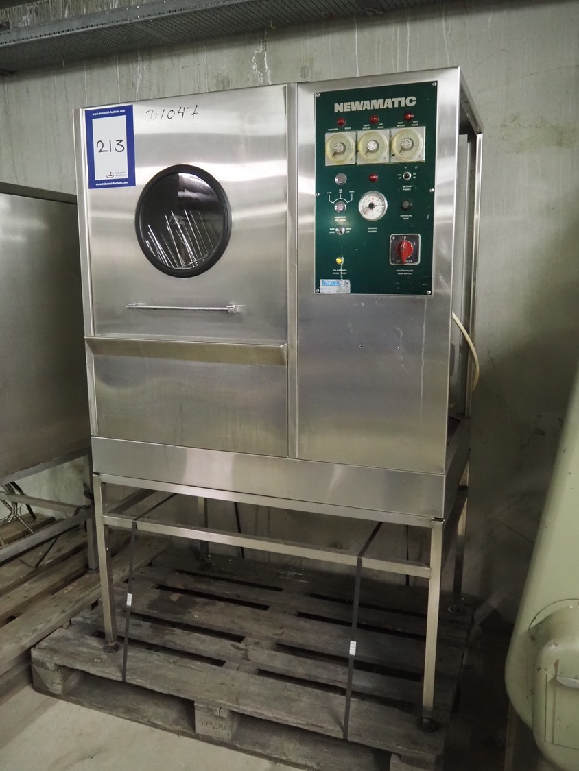 Netzsch Newamatic GmbH washing machine for vials, type: 1-570, machine number: 1086, year of construction: 1973, 220-380 V, 3 Ph, 50 Hz, 18 A, 11.5 kW, dimensions: 960 mm x 750 mm x 1530 mm.