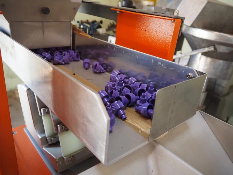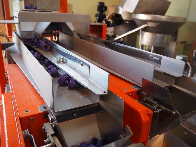 Engelhardt vibrating weighing machine, type: AQ120/A-DSP-2, serial number: 767, year of construction: 1991, 220 V, 50 Hz, 2 lanes, lane width: (2x) 110 mm, weighing range: 0-1000 gram, dimensions: 2150 mm x 1150 mm x 2150 mm.