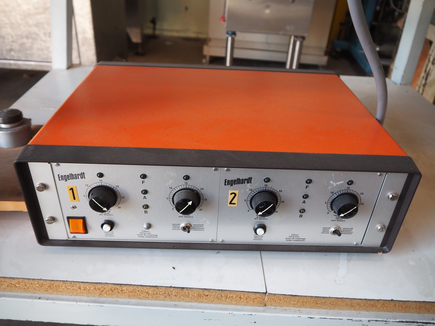 Engelhardt vibrating weighing machine, type: AQ120/A-DSP-2, serial number: 767, year of construction: 1991, 220 V, 50 Hz, 2 lanes, lane width: (2x) 110 mm, weighing range: 0-1000 gram, dimensions: 2150 mm x 1150 mm x 2150 mm.
