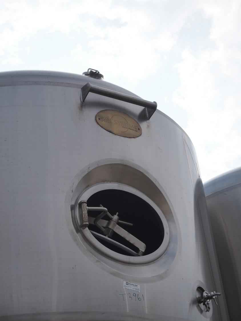 Ant Systems s/s double jacketed fermentation tank, capacity: 6000 liter, tank: Ø 2000 mm, total dimensions: 2200 mm x 2200 mm x 4100 mm.