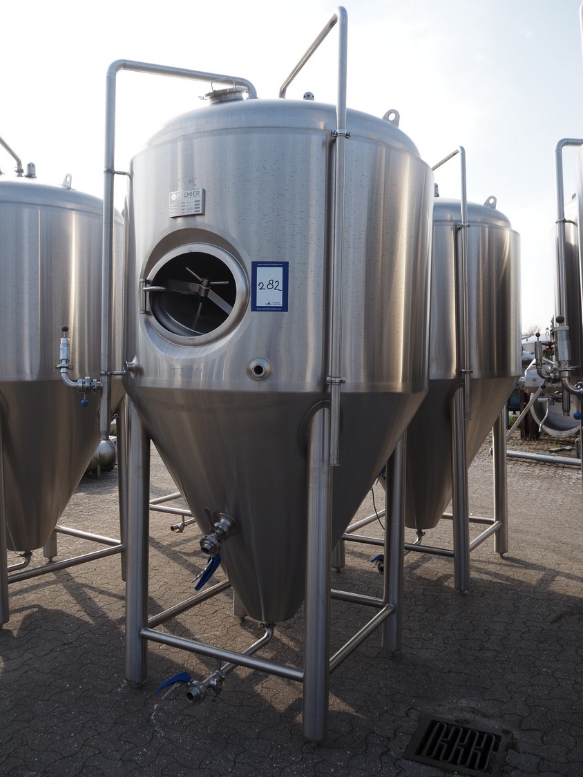 Premier s/s double jacketed tank, serial number: 18139-4, year of construction: 03/2018, capacity: 2000 liter, maximum pressure: 0.49 bar, maximum working temperature: 40°C, tank: Ø 1400 mm, total dimensions: 1500 mm x 1500 mm x 2875 mm.