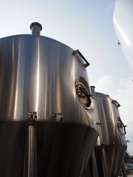 Ant Systems s/s double jacketed fermentation tank, capacity: 6000 liter, tank: Ø 2000 mm, total dimensions: 2200 mm x 2200 mm x 4100 mm.