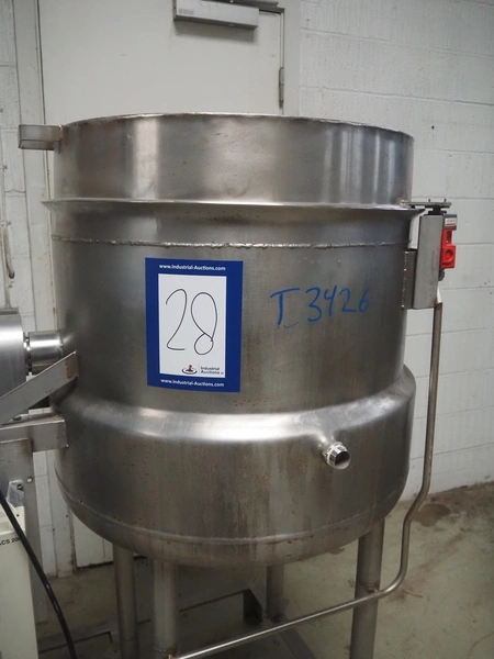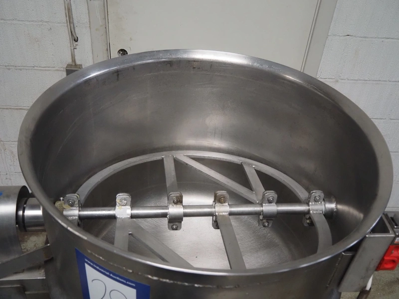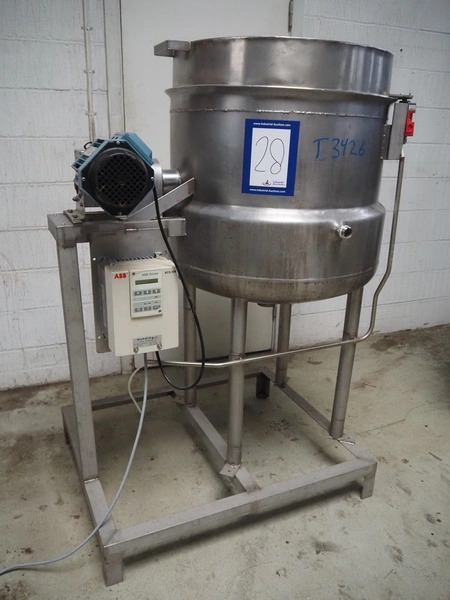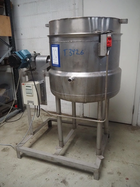 Benzlers s/s mixing tank with horizontal frame agitator, type: BS 50, double jacket, capacity: 200 liter, inside dimensions: Ø 692 mm x 620 mm, total dimensions: 1100 mm x 810 mm x 1325 mm.