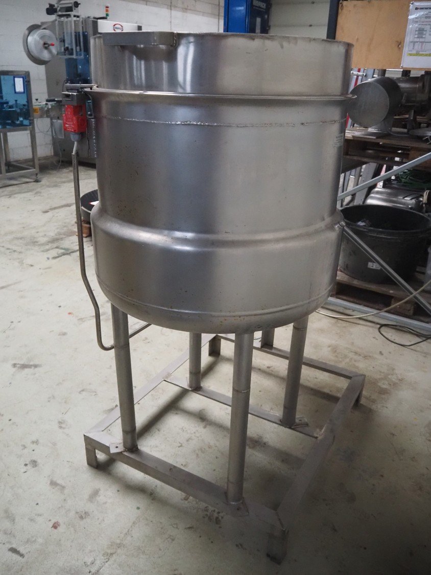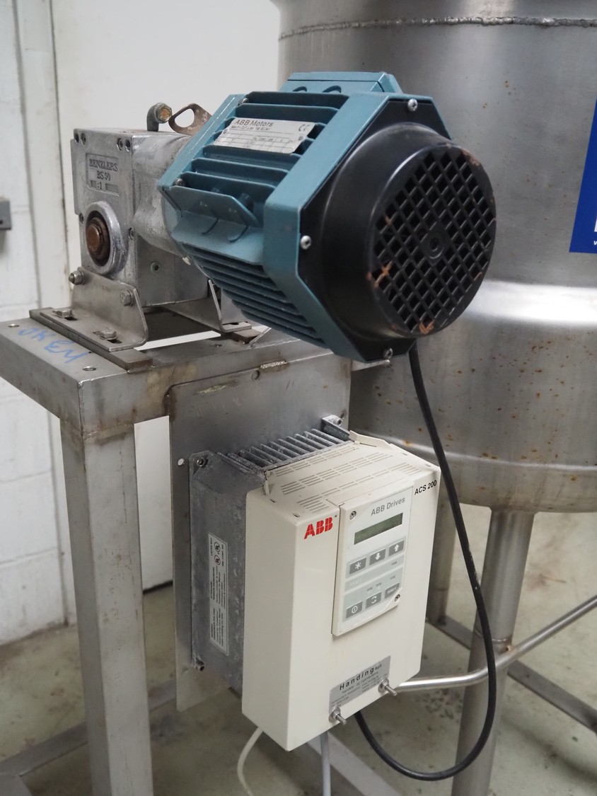 Benzlers s/s mixing tank with horizontal frame agitator, type: BS 50, double jacket, capacity: 200 liter, inside dimensions: Ø 692 mm x 620 mm, total dimensions: 1100 mm x 810 mm x 1325 mm.