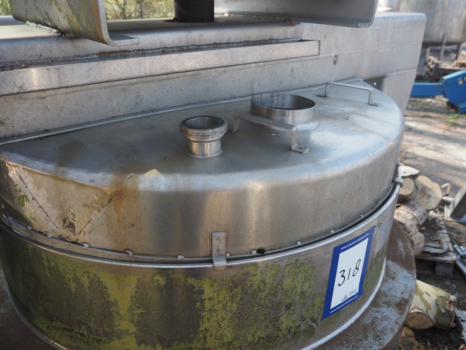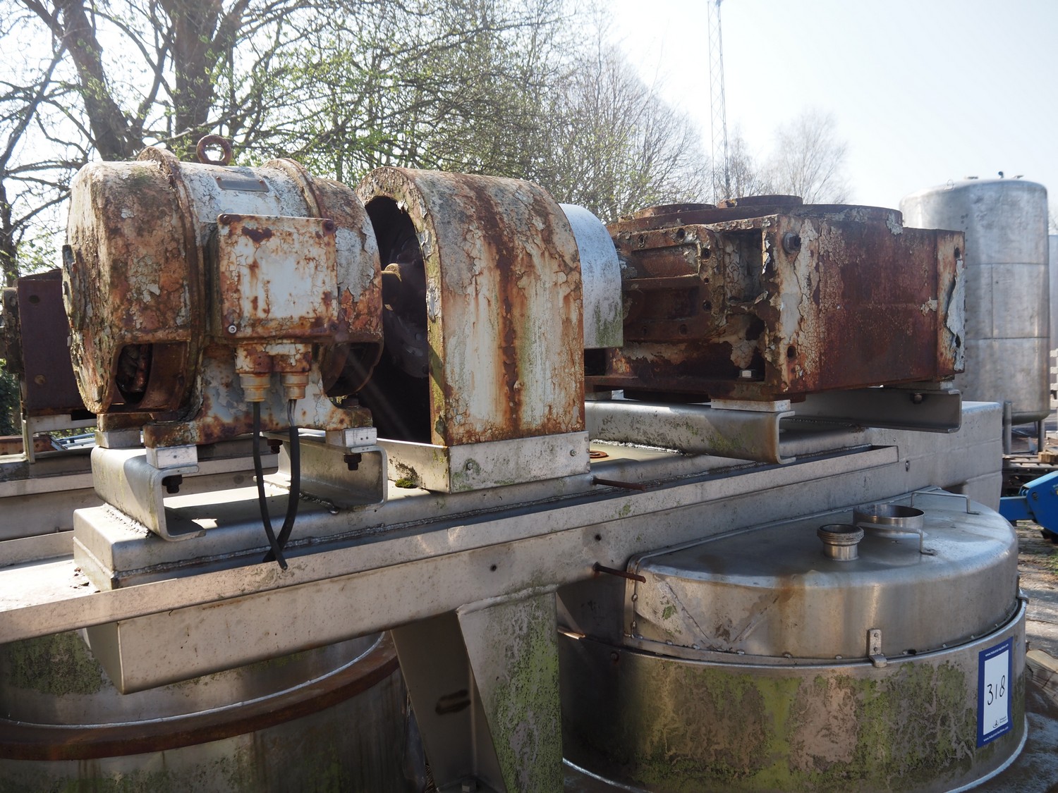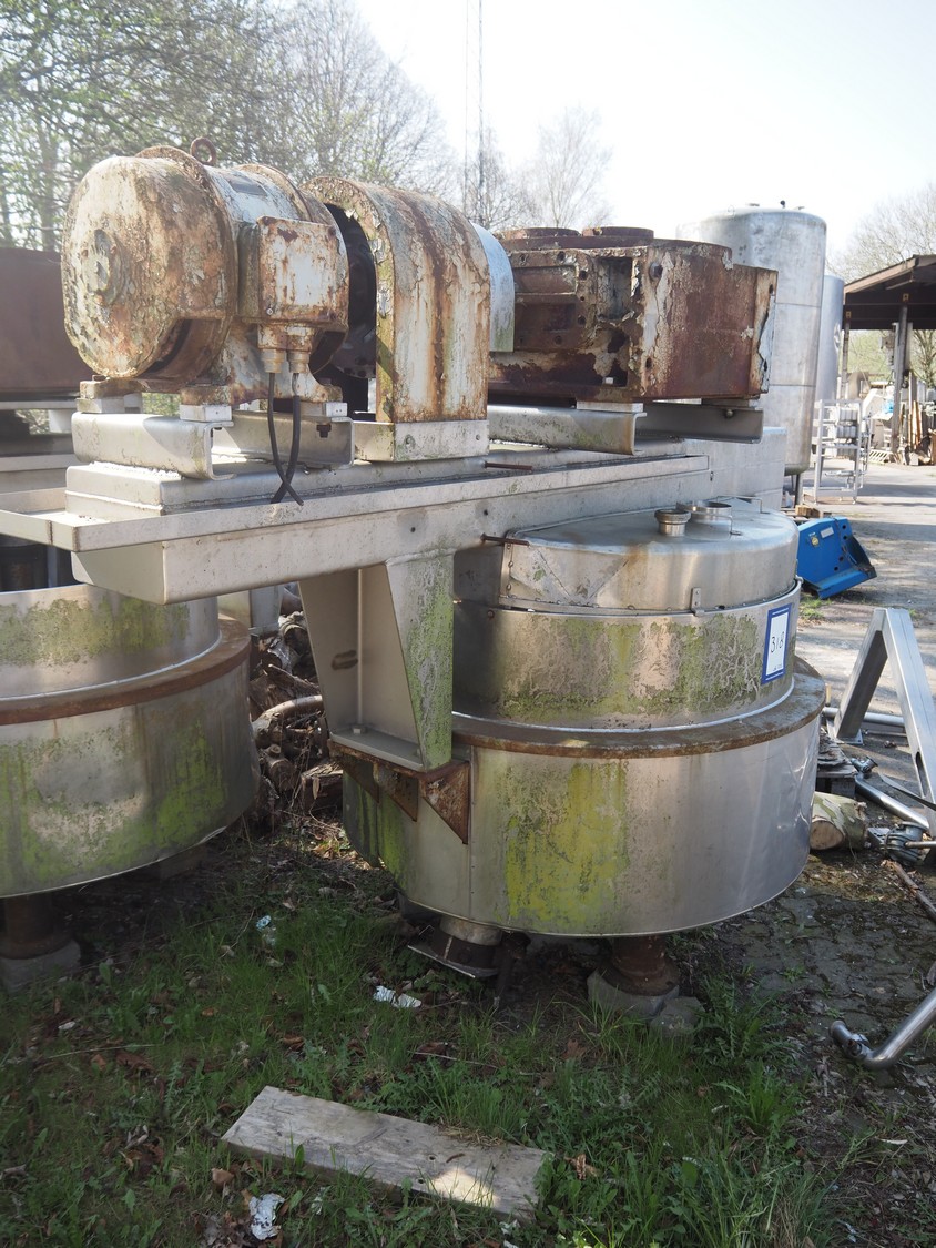 S/s double jacketed mixing tank with agitator, removable lids, capacity: 800 liter, 400 V, dimensions: 2600 mm x 1380 mm x 2100 mm.