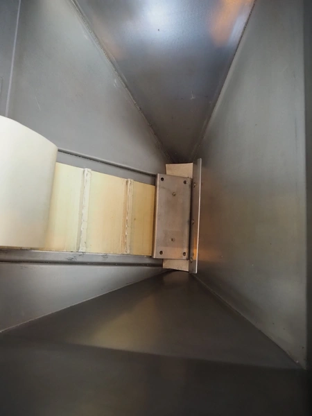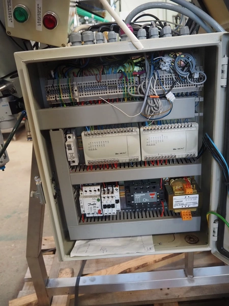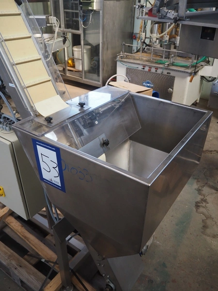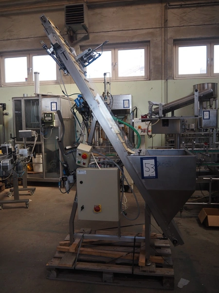 S/s capsule elevator, 380 V, plastic belt, belt width: 150 mm, divider height: 15 mm, distance between dividers: 90 mm, elevating height: 2730 mm, total dimensions: 1500 mm x 650 mm x 2400 mm.