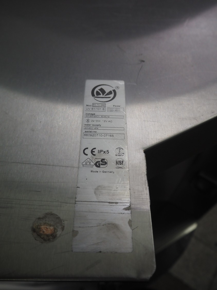 Maico Elektroapparate-Fabrik GmbH extraction hood, model: UV 61/101 E, serial number: 660920710-07165, 200/240 V, 50/60 Hz, dimensions: 1200 mm x 850 mm x 410 mm.
