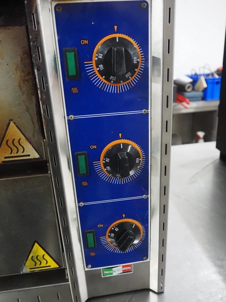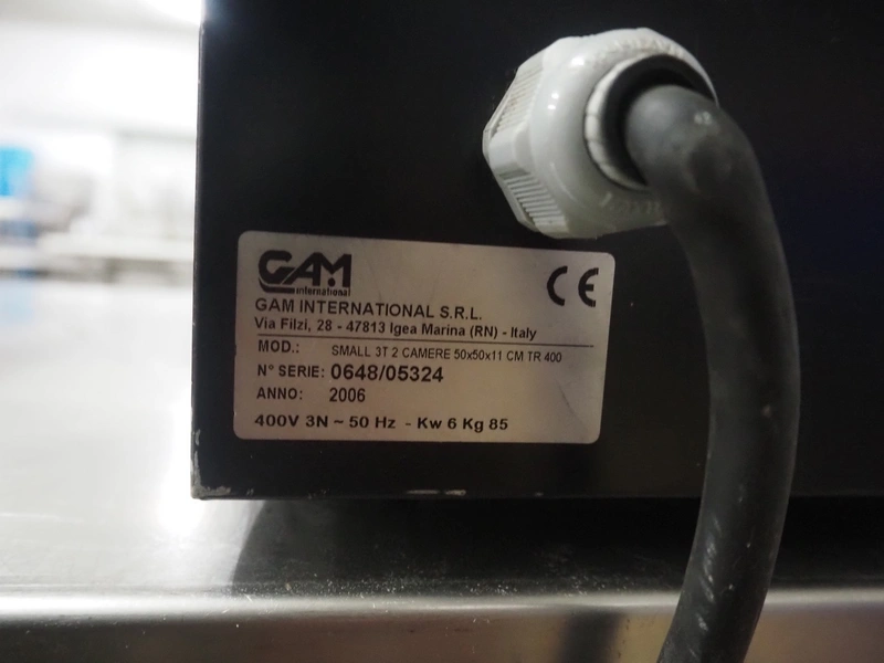 GAM pizza oven, model: SMALL 3T 2 CAMERE, serial number: 0648/05324, year of construction: 2006, 400 V, 3 Ph, 50 Hz, 6 kW, weight: 85 kg, inside dimensions: (2x) 520 mm x 500 mm x 100 mm, total dimensions: 750 mm x 700 mm x 500 mm.