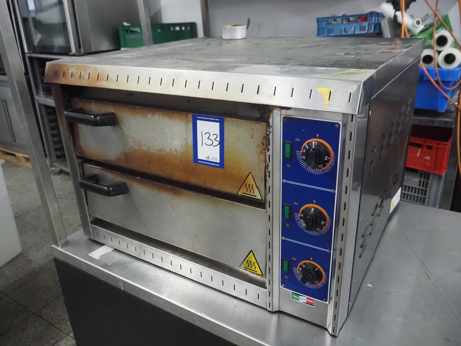 GAM pizza oven, model: SMALL 3T 2 CAMERE, serial number: 0648/05324, year of construction: 2006, 400 V, 3 Ph, 50 Hz, 6 kW, weight: 85 kg, inside dimensions: (2x) 520 mm x 500 mm x 100 mm, total dimensions: 750 mm x 700 mm x 500 mm.