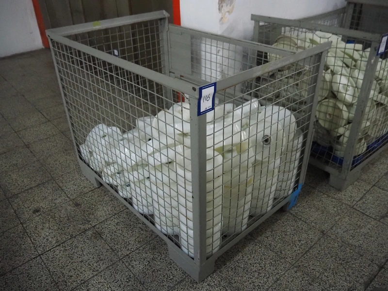 Steel gitter box with Blickle wheels for meat bins, total dimensions: 1200 mm x 800 mm 1100 mm.