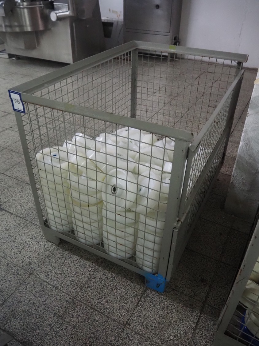 Steel gitter box with Blickle wheels for meat bins, total dimensions: 1200 mm x 800 mm 1100 mm.