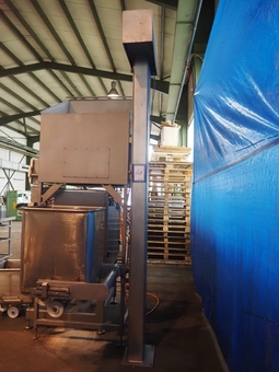 S/s lifter for meat bins, lifting height: 2600 mm, total dimensions: 1100 mm x 1100 mm x 3500 mm.0 bidsLot is closed -