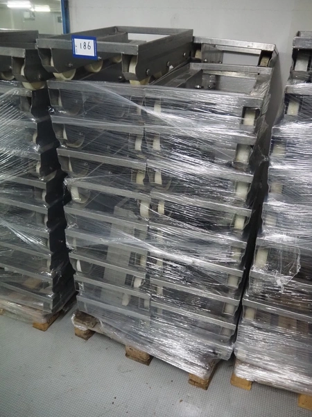 Pallet with 39 s/s rollies, dimensions rollies : 650 mm x 410 mm x 170 mm.