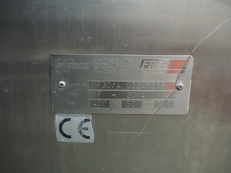 Frey piston filler, type: MF-30/4, 400 V, 50 Hz, 1.1 kW, dimensions: 1100 mm x 700 mm x 1300 mm. Including various filling pipes.