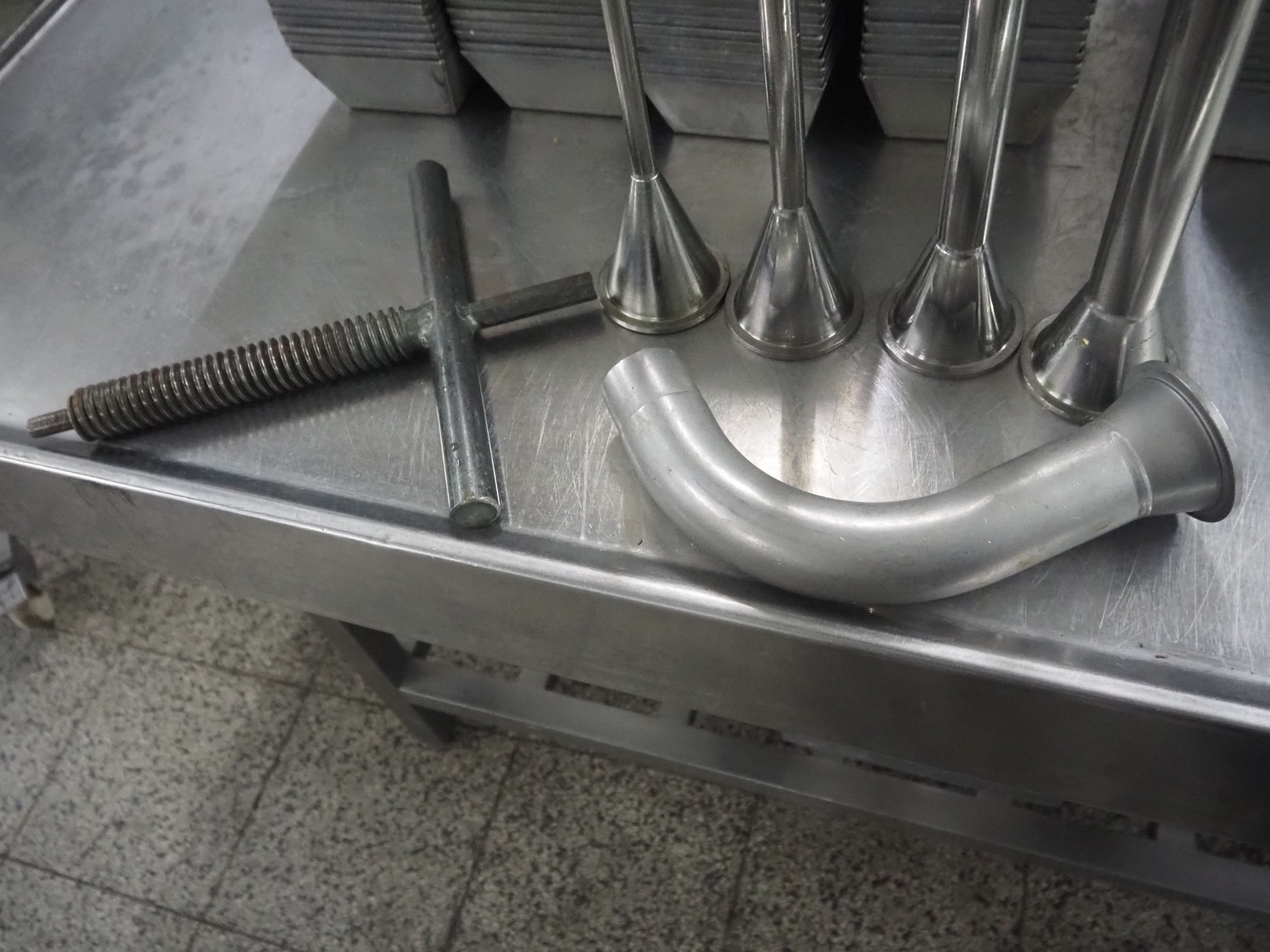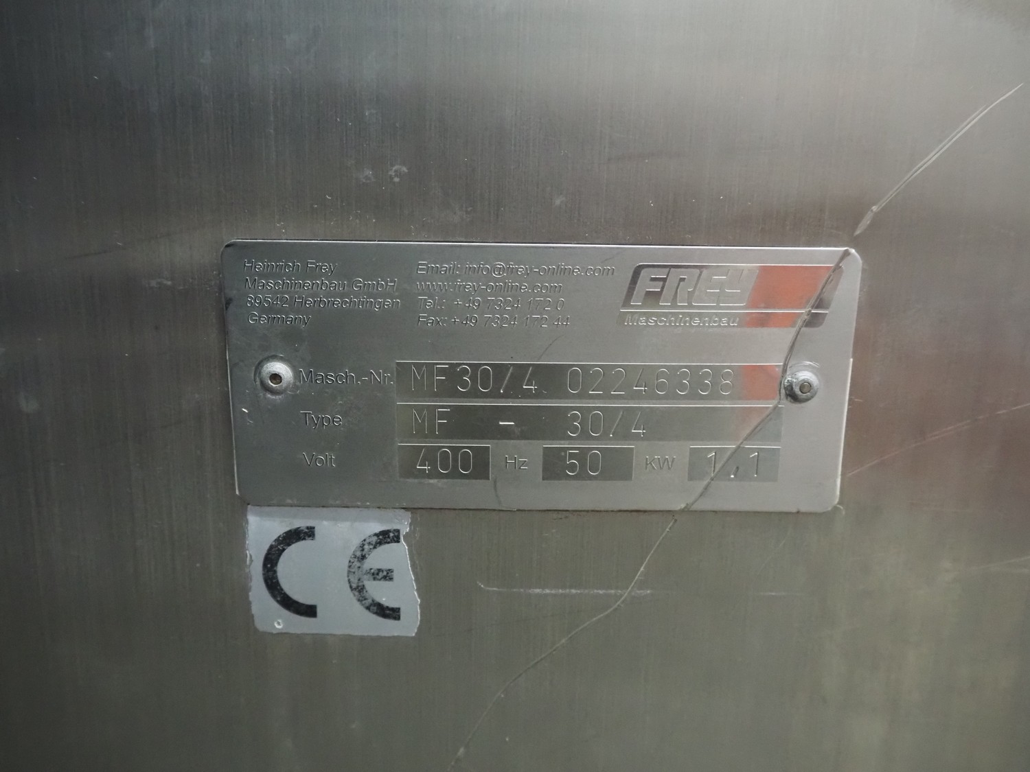 Frey piston filler, type: MF-30/4, 400 V, 50 Hz, 1.1 kW, dimensions: 1100 mm x 700 mm x 1300 mm. Including various filling pipes.