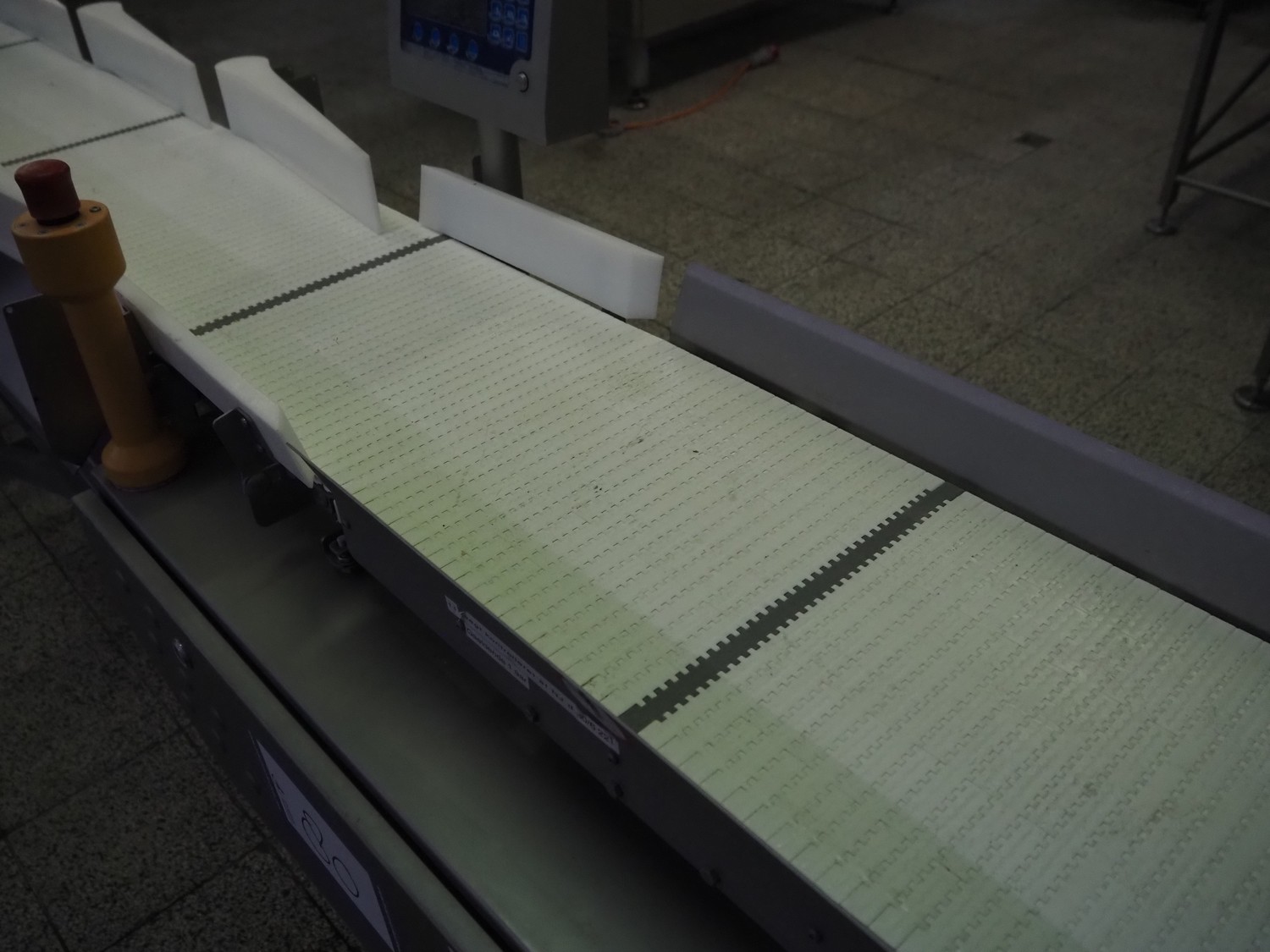 Marel grader and sorting belt with 6 stations, type: gra-pa32-cq60, serial number: A033781, year of construction: 2005, 230 V, 1 Ph, 50 Hz, 6 A, max weight: 3/5 kg, min weight: 100/200 g, max rate: 80/min, plastic belt, belt width: 300 mm, total dimensions: 2900 mm x 560 mm x 1300 mm.