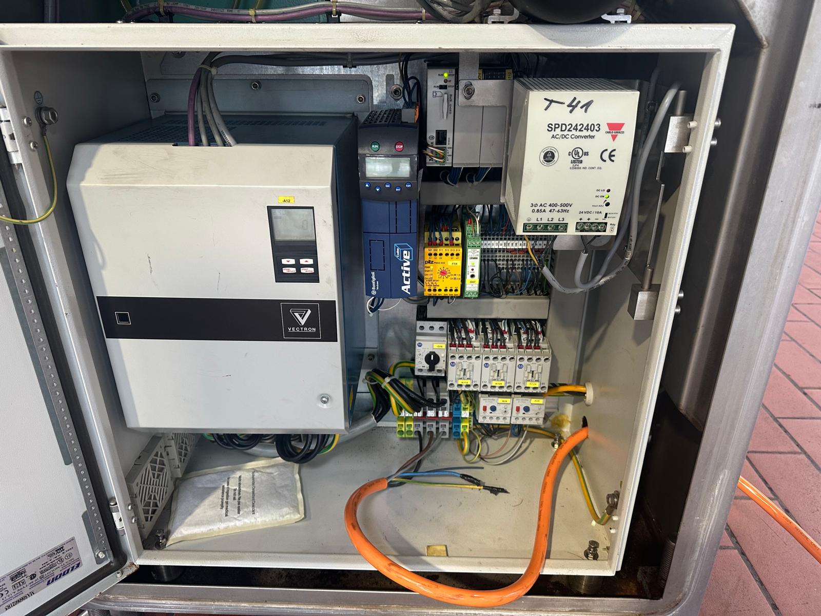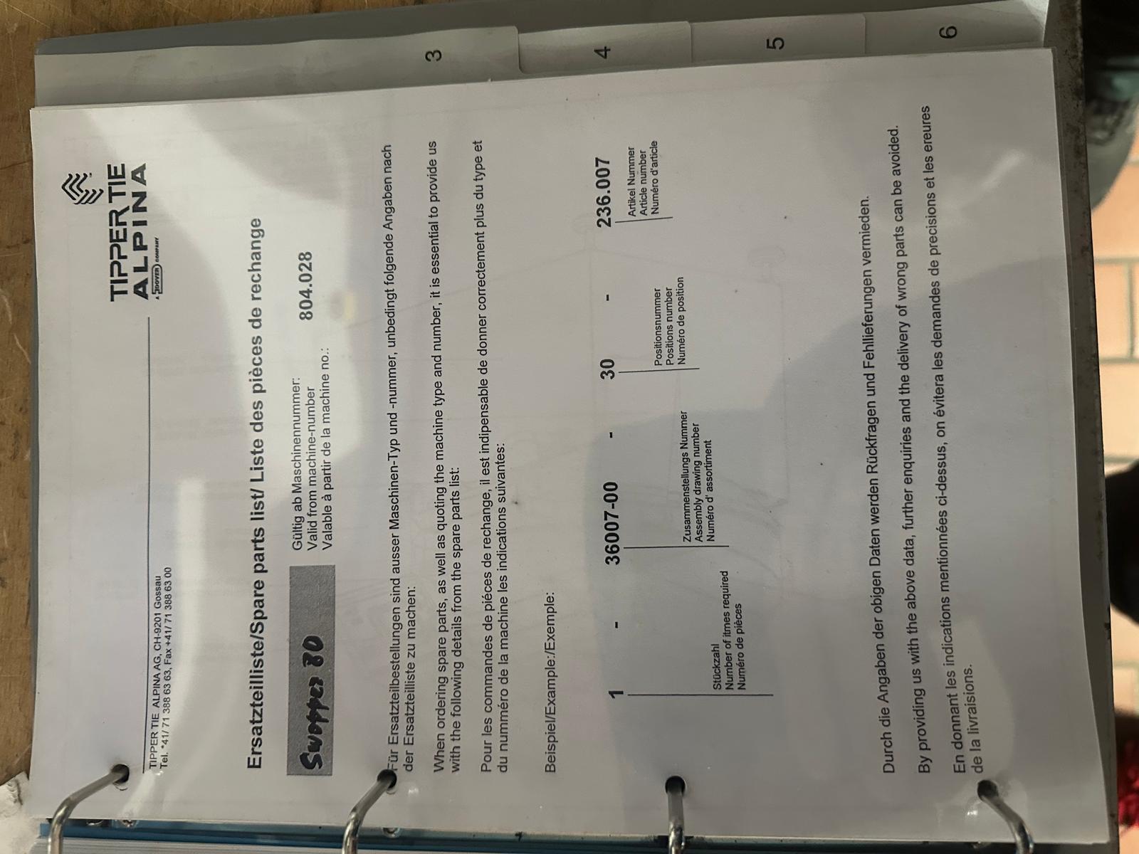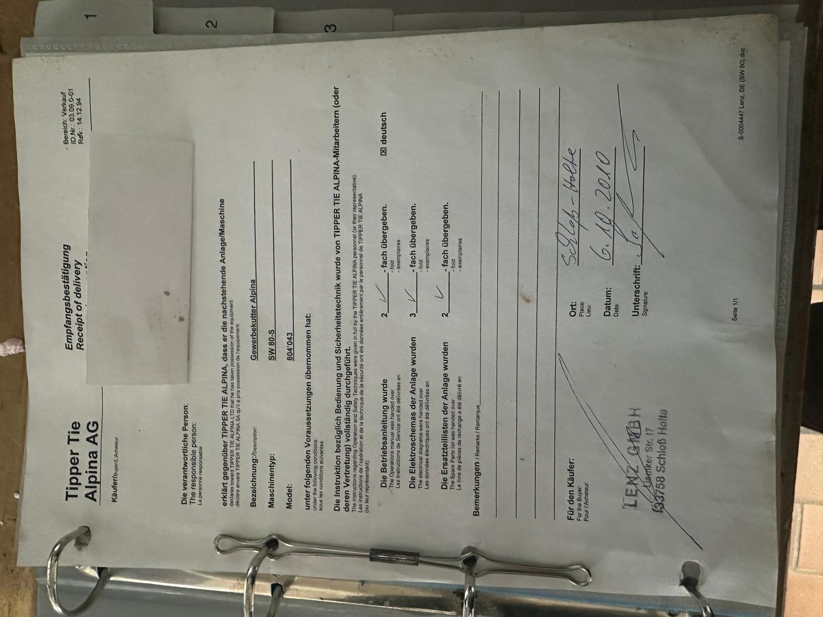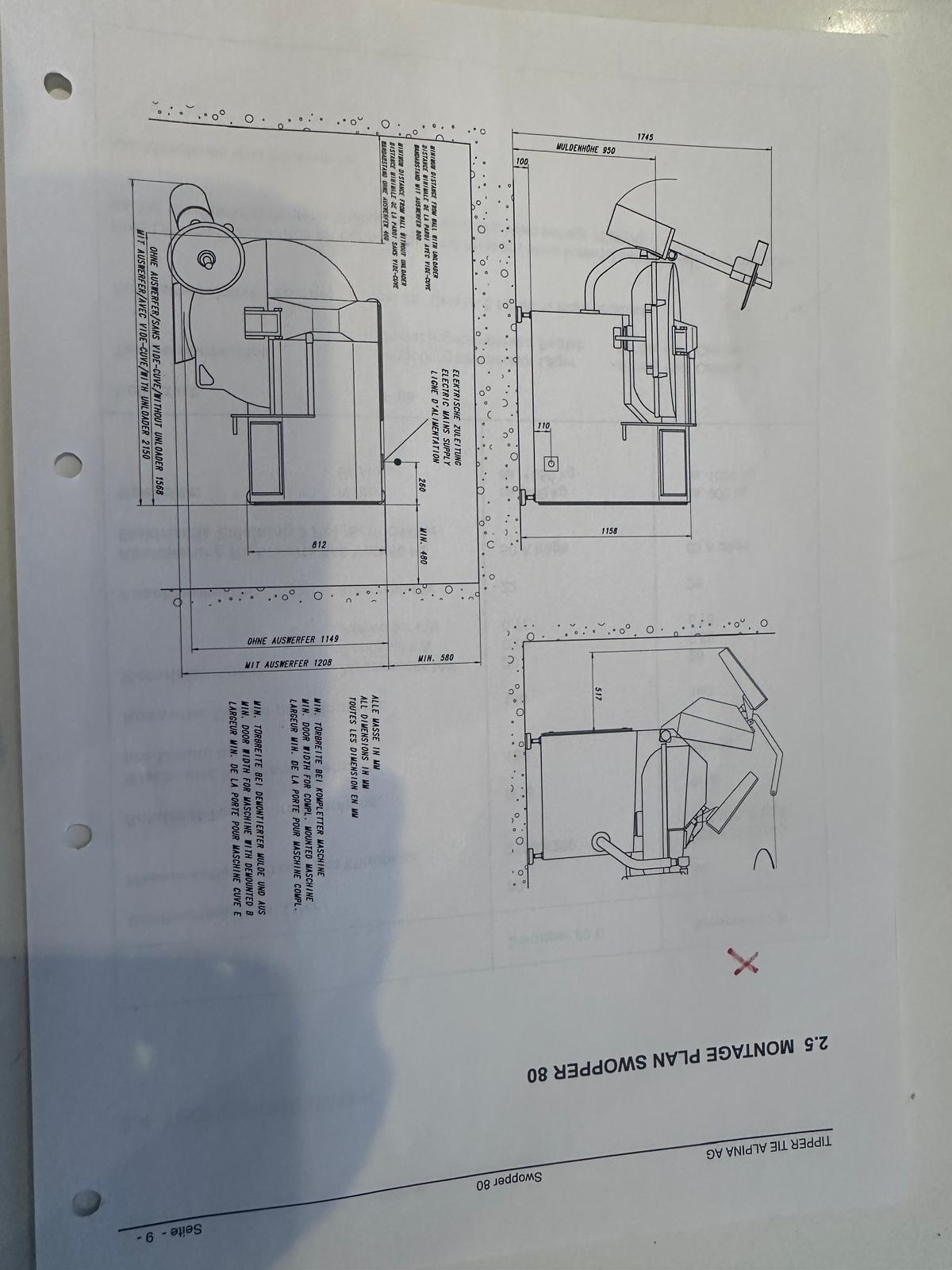 Tipper Tie Alpina cutter with ejecter, type: SW 80-S, machine number: 804.043, year of construction: 2009, 400 V, 3 Ph, 50 Hz, 75 A, 38 kW, capacity: 80 liter, weight: 1050 kg, dimensions: 2150 mm x 1210 mm x 1745 mm.