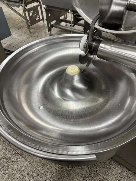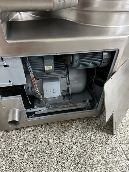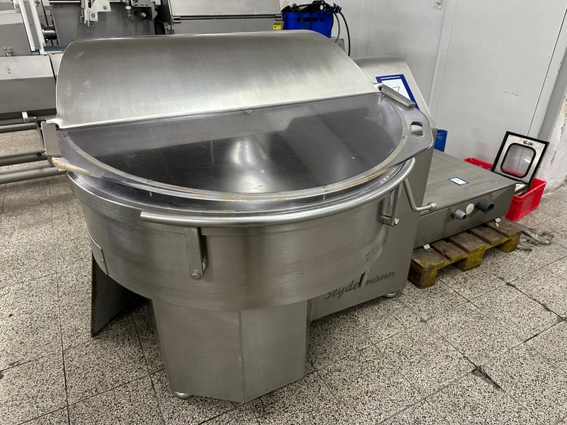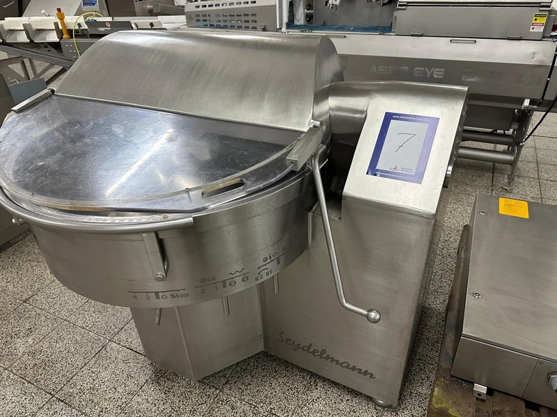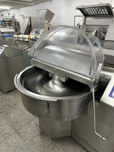 Seydelmann cutter, type: K 90 Ultra, machine number: 04 341-1, year of construction: 2004, 26 kW, weight: 1400 kg, volume: 90 liter, dimensions: 1400 mm x 1250 mm x 1400 mm. Including s/s switch cabinet, dimensions: 1000 mm x 800 mm x 1400 mm and crate with display.