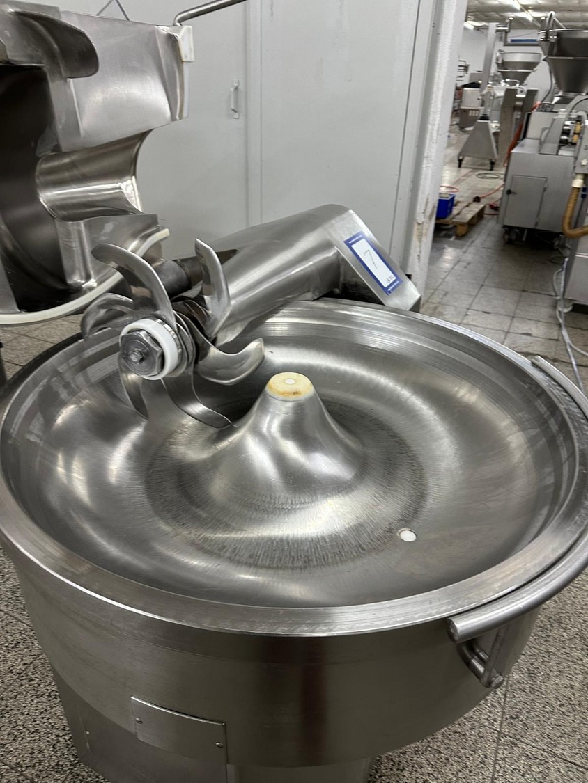 Seydelmann cutter, type: K 90 Ultra, machine number: 04 341-1, year of construction: 2004, 26 kW, weight: 1400 kg, volume: 90 liter, dimensions: 1400 mm x 1250 mm x 1400 mm. Including s/s switch cabinet, dimensions: 1000 mm x 800 mm x 1400 mm and crate with display.