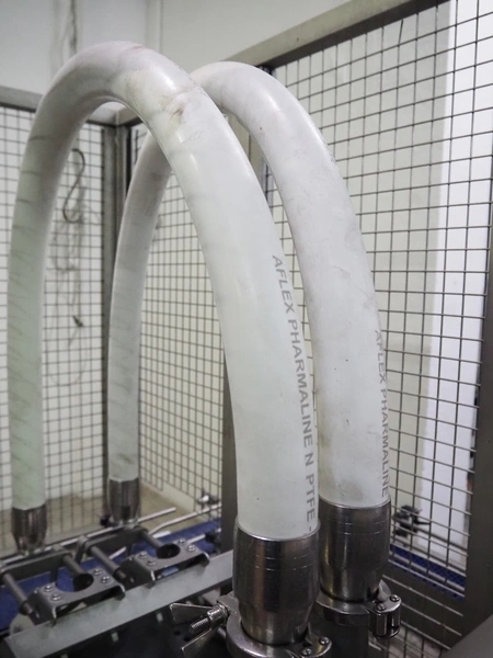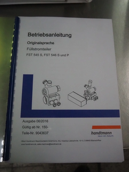 Verbufa mobile dosing / filling machine for cans / pots, type: 52088-A-0084, serial number: 261960, year of construction: 2020, 230 V, 50 Hz, 10 A, 1.6 kW, weight: 400 kg, 2 heads, head dimensions: (2x) Ø 35 mm, total dimensions: 1200 mm x 950 mm x 1900 mm. With Handtmann flow divider, type: FST546, number: 1820494, year of construction: 05-2020, and 2 crates with parts.