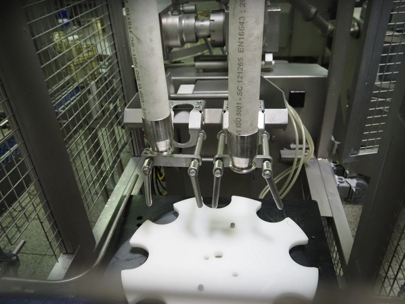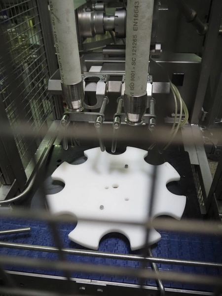 Filling station, plastic belt, belt width: (1x) 100 mm (1x) 150 mm, total dimensions: 3200 mm x 2000 mm x 2200 mm. Including crate with parts.