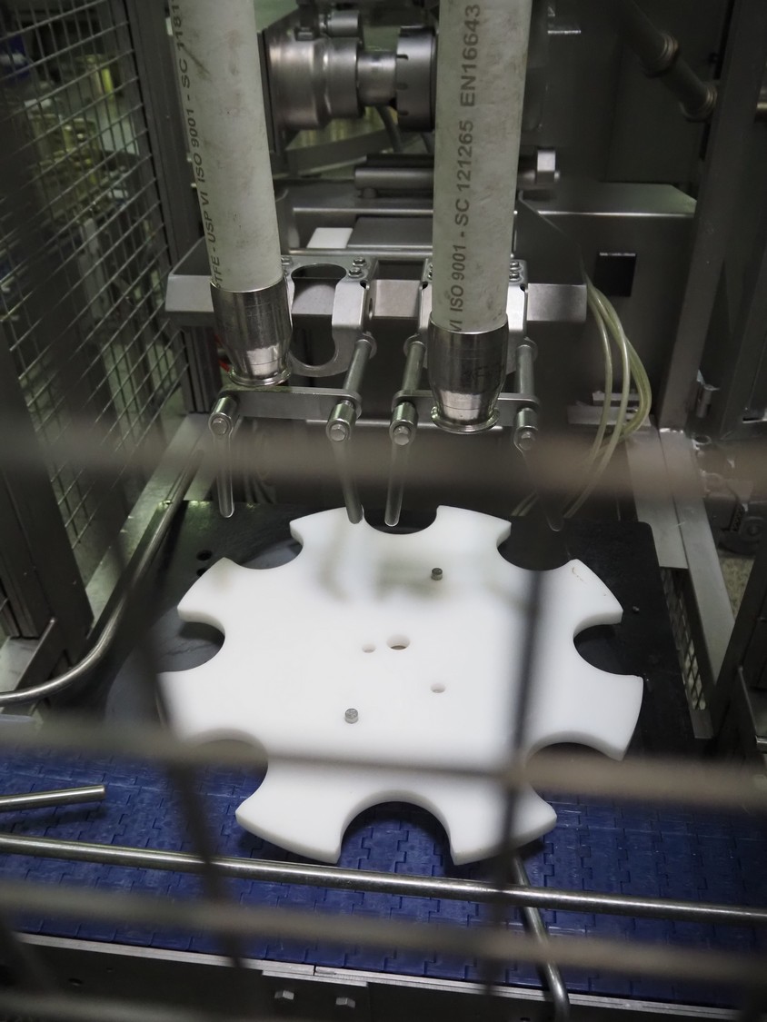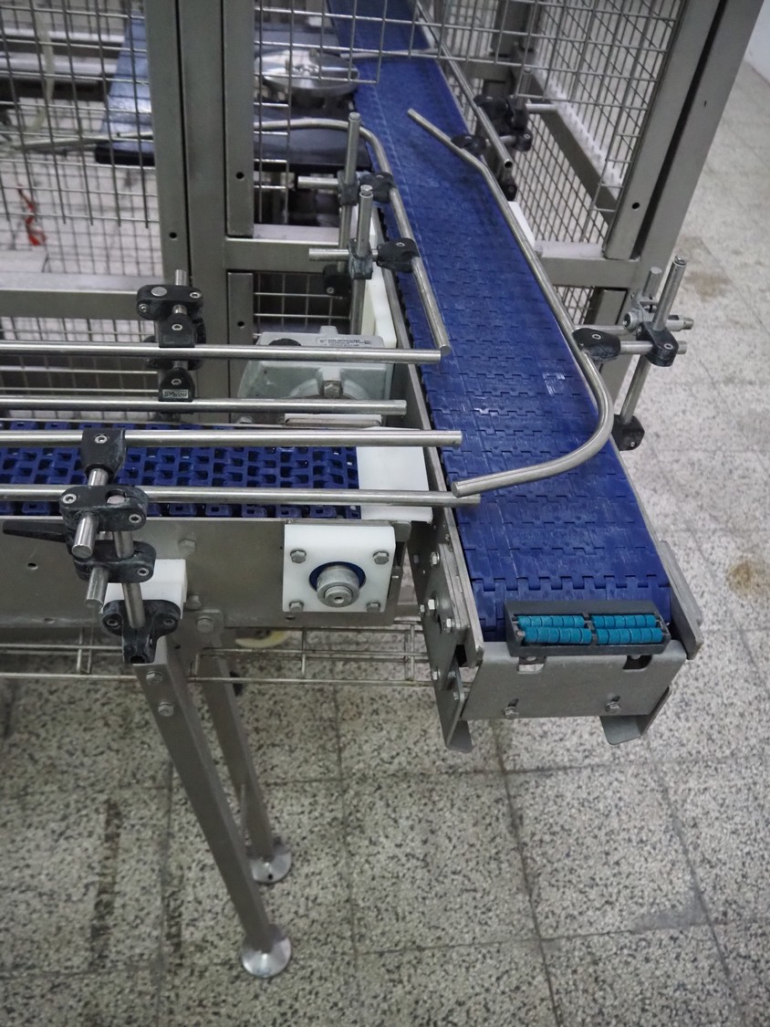 Filling station, plastic belt, belt width: (1x) 100 mm (1x) 150 mm, total dimensions: 3200 mm x 2000 mm x 2200 mm. Including crate with parts.