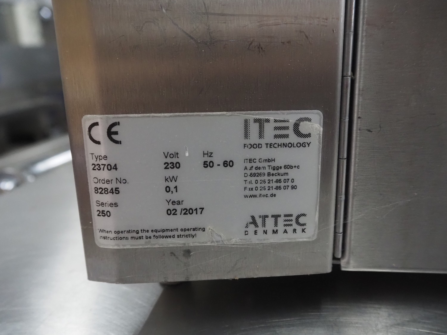 Itec hand disinfection unit, type: 23704, serial number: 250, year of construction: 02/2017, 230 V, 50/60 Hz, 0.1 kW, dimensions: 800 mm x 280 mm x 250 mm.