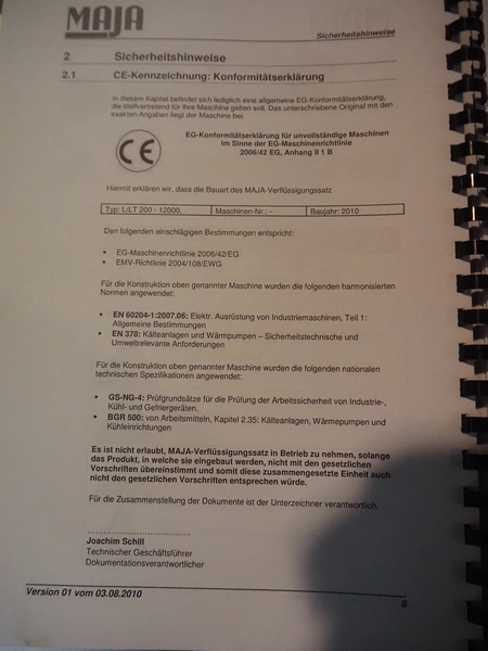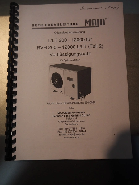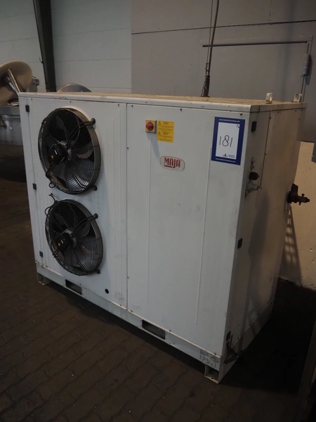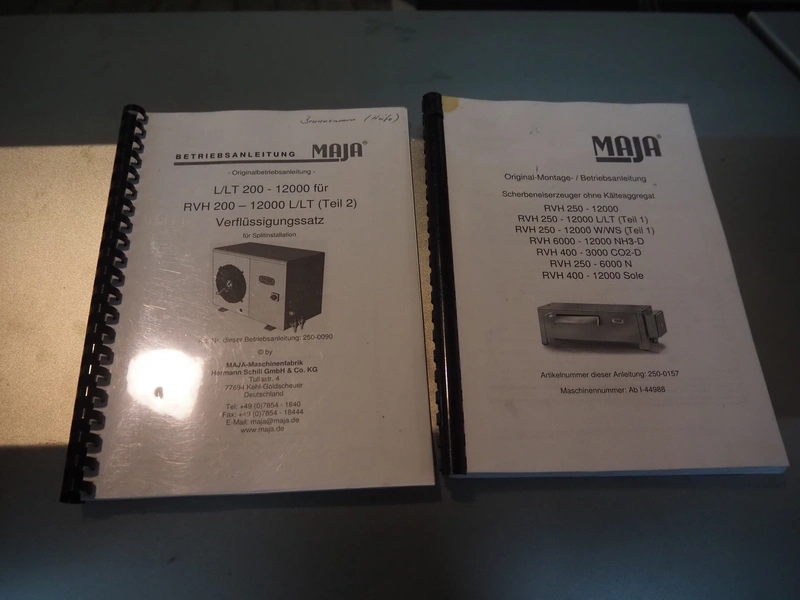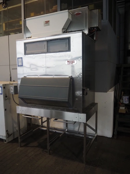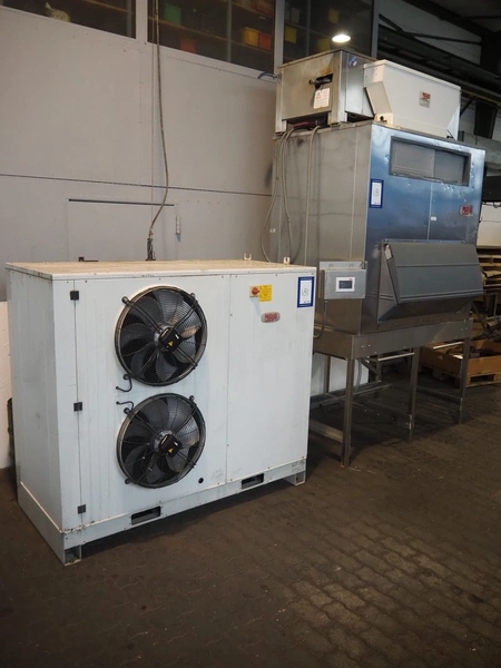Maja-Maschinenfabrik GmbH flake ice machine with bunker, type: RVH 3000 L, machine number: 1-45147, year of construction: 2014, 400 V, 3 Ph, 50 Hz, 1.16 A, 0.34 kW, refrigerant: R 404A, dimensions ice machine: 1800 mm x 950 mm x 550 mm, dimensions bunker: 1700 mm x 1250 mm x 2500 mm. Including Maja-Maschinenfabrik cooling unit, dimensions unit: 1800 mm x 1000 mm x 1500 mm.