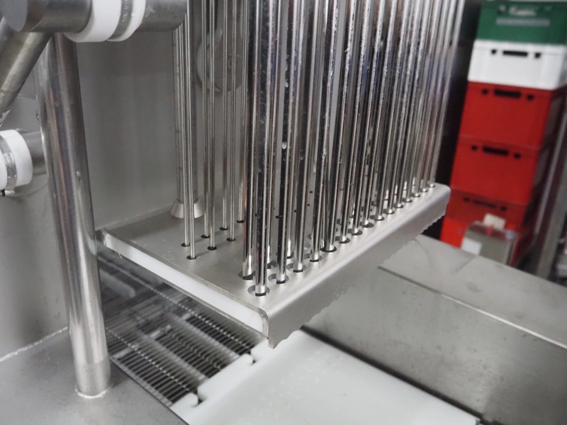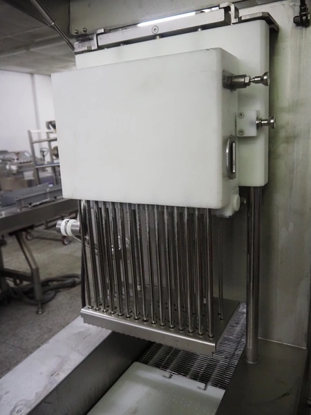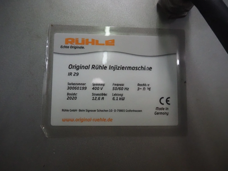 Rühle injector/tenderizer, type: IR 29, serial number: 30060199, year of construction: 2020, 400 V, 3 Ph, 50/60 Hz, 12.6 A, 6.1 kW, s/s mesh belt, belt width: 340 mm, clearance: 350 mm x 275 mm, total dimensions: 1200 mm x 900 mm x 1900 mm.