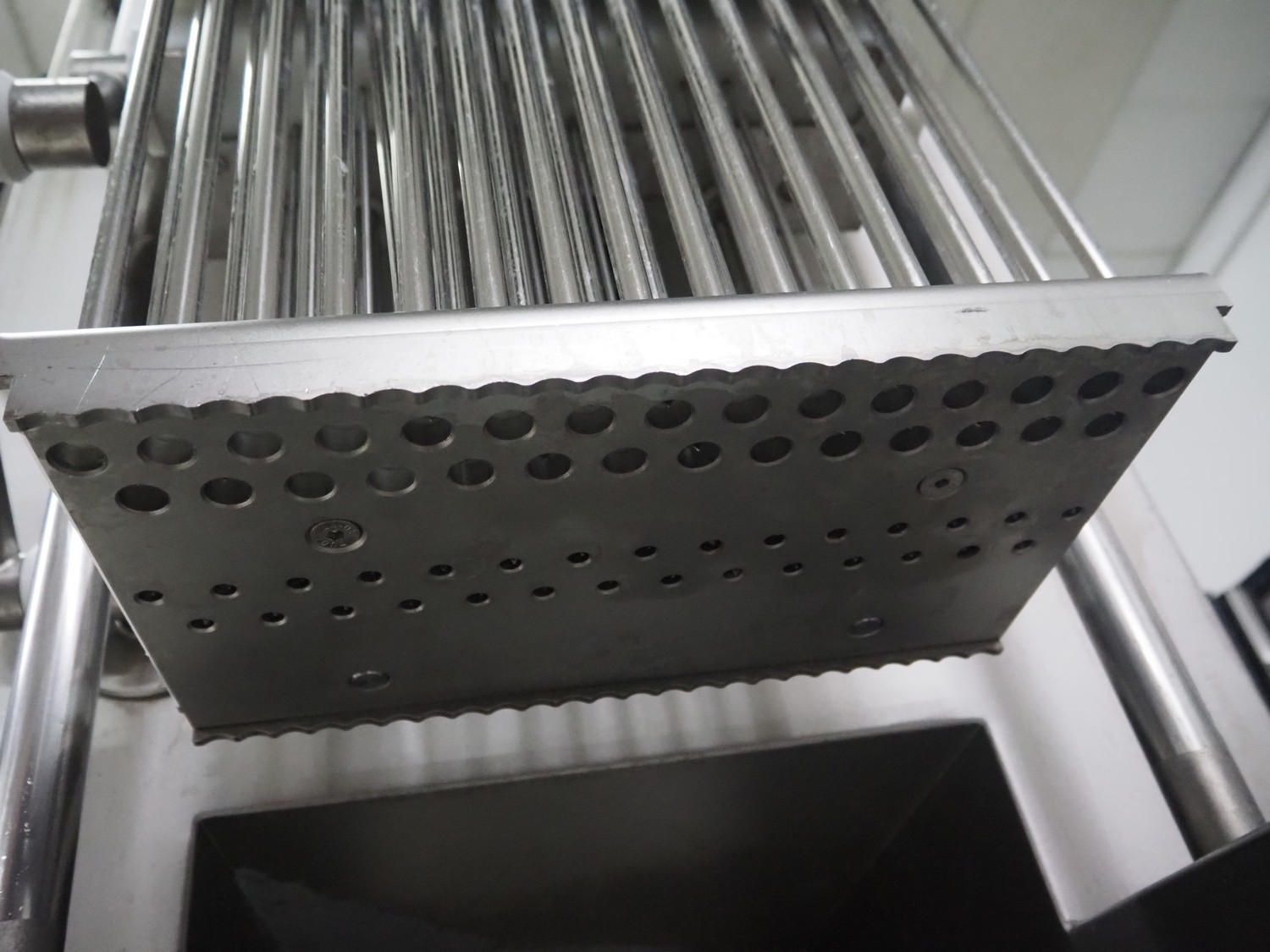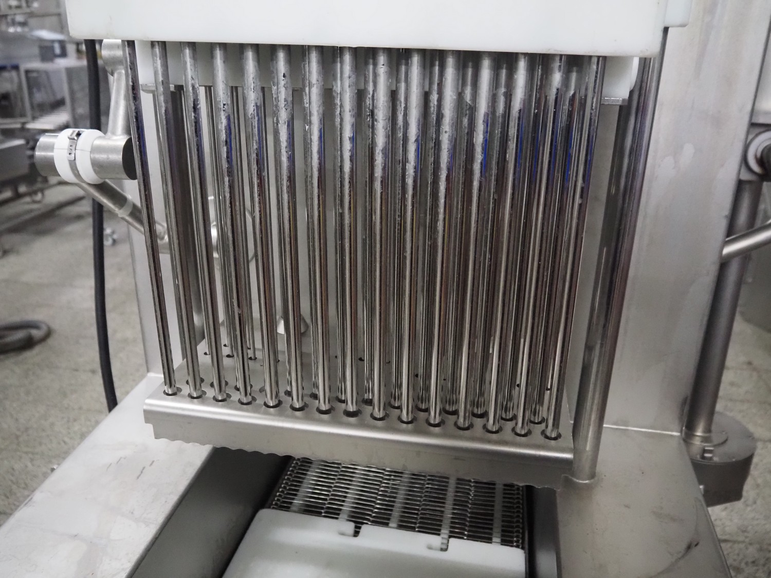Rühle injector/tenderizer, type: IR 29, serial number: 30060199, year of construction: 2020, 400 V, 3 Ph, 50/60 Hz, 12.6 A, 6.1 kW, s/s mesh belt, belt width: 340 mm, clearance: 350 mm x 275 mm, total dimensions: 1200 mm x 900 mm x 1900 mm.
