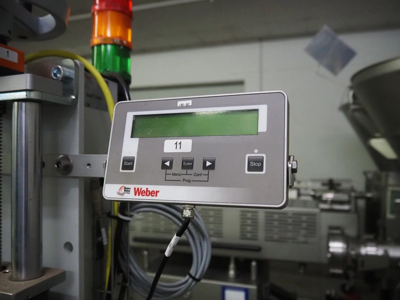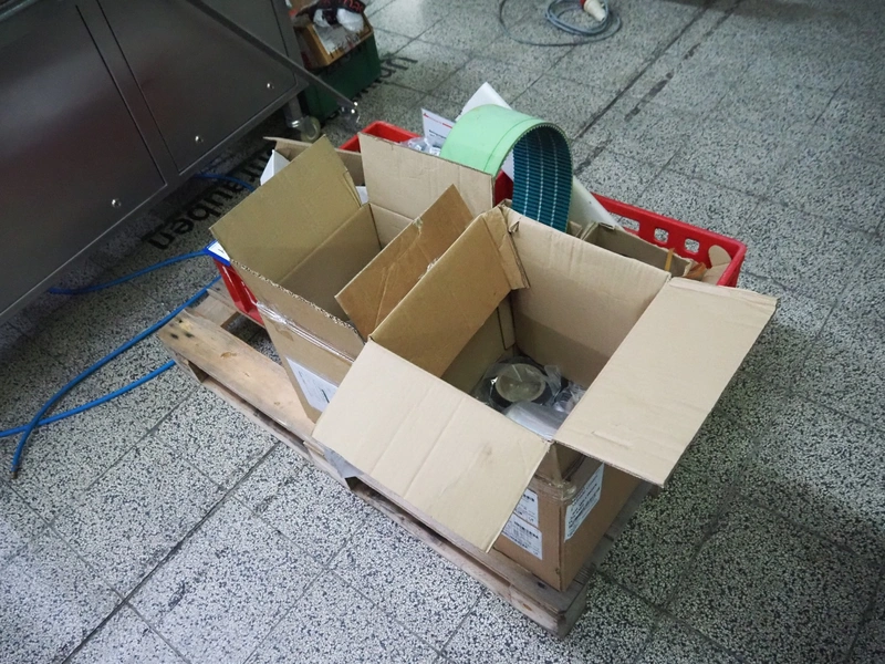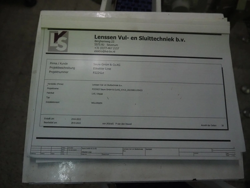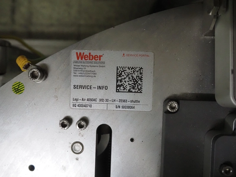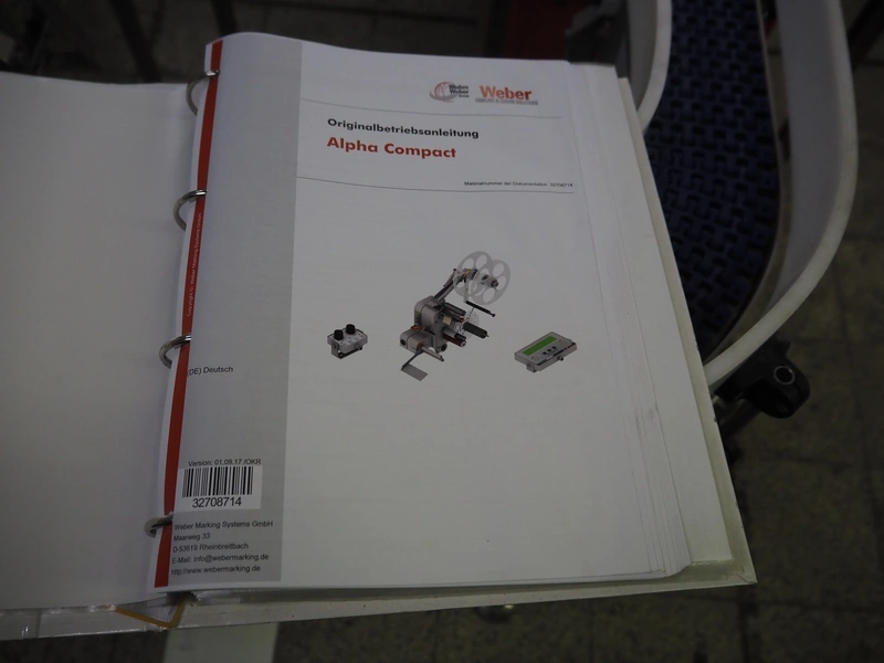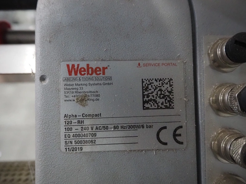 Weber Marking Systems GmbH labelling machine with side and top labeller, type: Geset 700, model: 8, serial number: 50037872, year of construction: 11/2019, 230 V, 50/60 Hz, 1.5 kW, plastic belt, belt width: 80 mm, total dimensions: 2750 mm x 1200 mm x 2000 mm. Including pallet with parts.