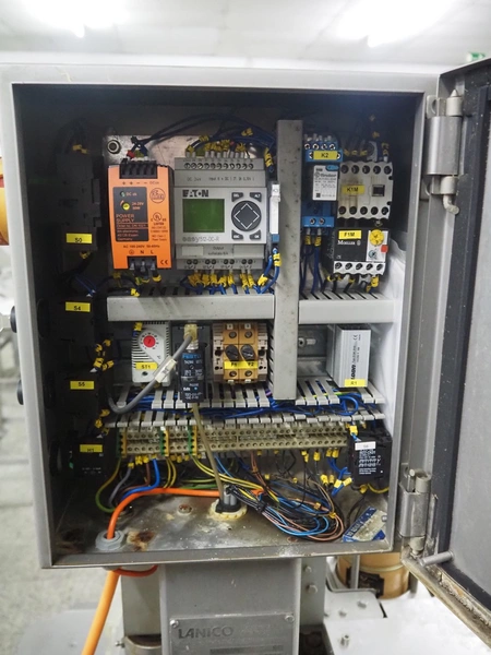 Lanico mobile can seamer, type: V110 PD, serial number: 110441, year of construction: 2012, 400 V, 3 Ph, 50 Hz, 1.8 A, air pressure: 6 bar, can diameter: 118 mm, total dimensions: 900 mm x 700 mm x 660 mm.