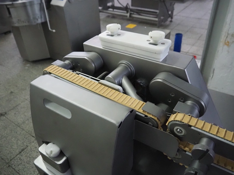 Handtmann mobile portioning- and linking machine, type: PVLS 125, number: 41919, year of construction: 2018, 400 V, 3 Ph, 50 Hz, 8.3 A, 5.5 kW, weight: 680 kg, dimensions: 1900 mm x 950 mm x 1350 mm.