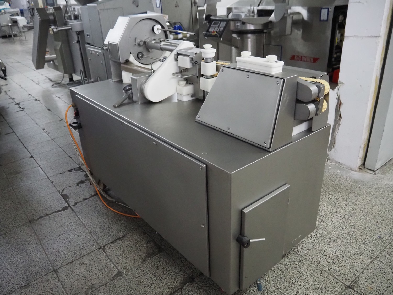 Handtmann mobile portioning- and linking machine, type: PVLS 125, number: 41919, year of construction: 2018, 400 V, 3 Ph, 50 Hz, 8.3 A, 5.5 kW, weight: 680 kg, dimensions: 1900 mm x 950 mm x 1350 mm.