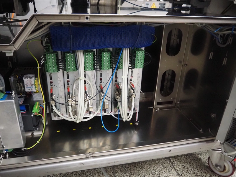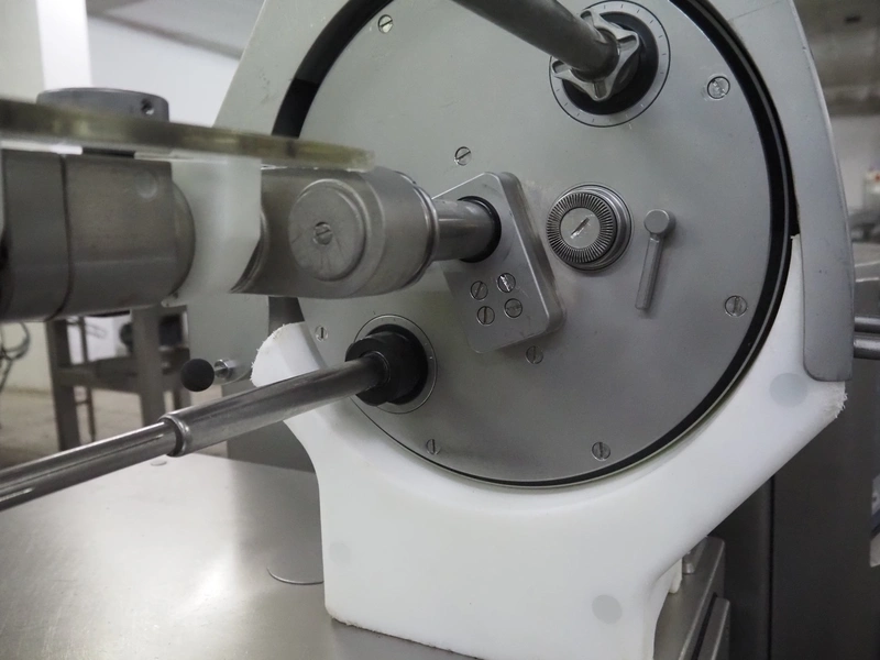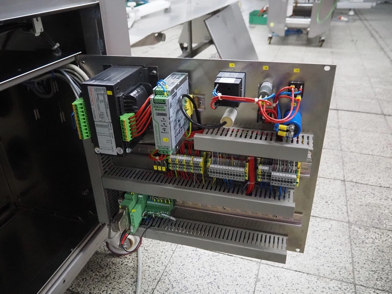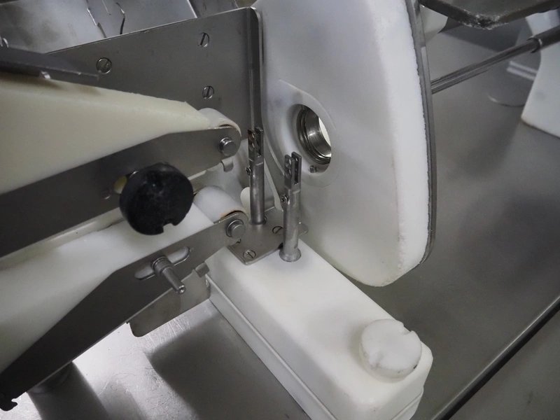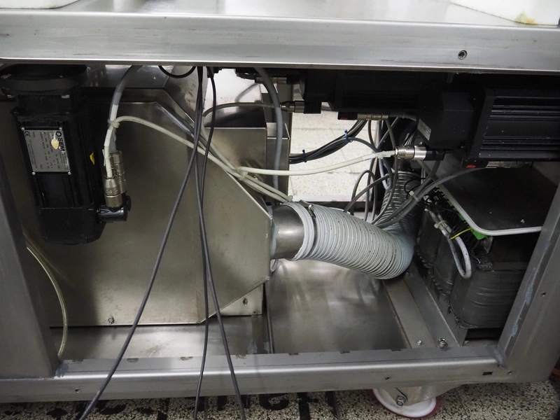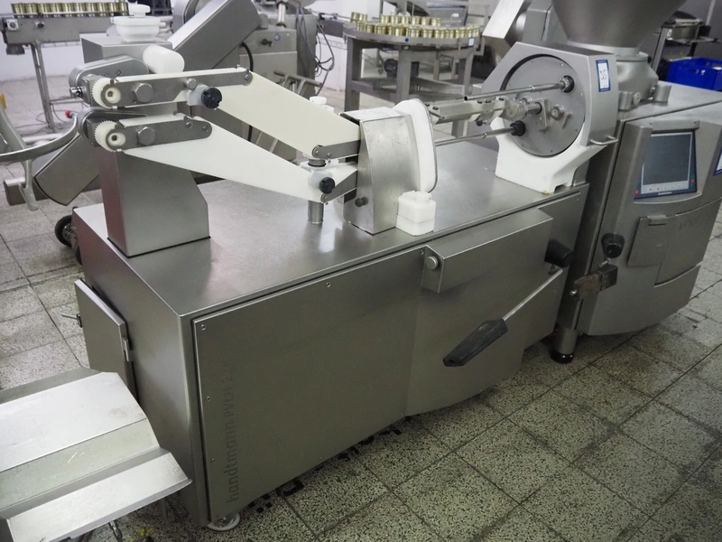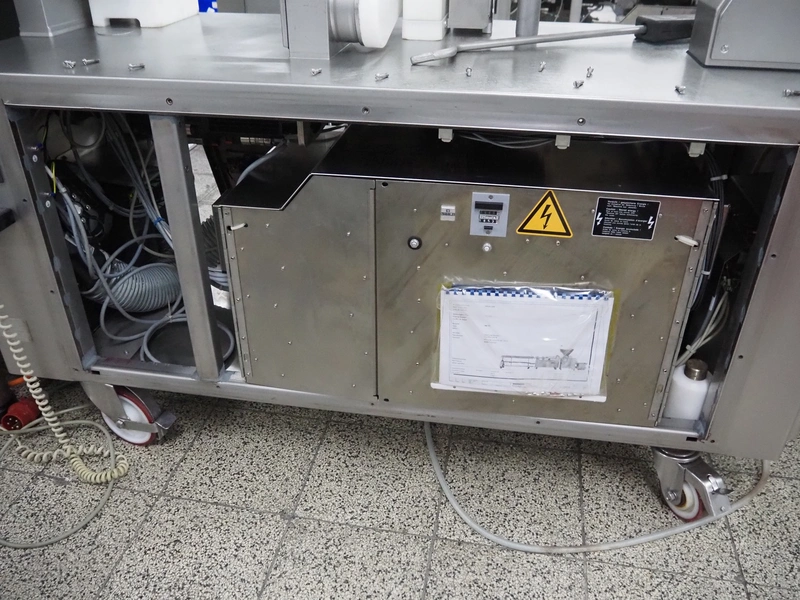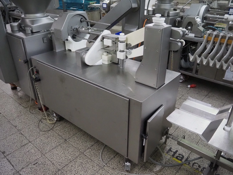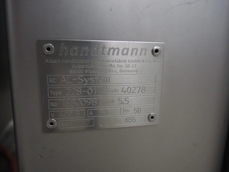 Handtmann mobile linking machine, type: 228-01, number: 16800981, year of construction: 2017, 400 V, 3 Ph, 50 Hz, 8.3 A, 5.5 kW, weight: 655 kg, dimensions: 1800 mm x 1100 mm x 1500 mm.
