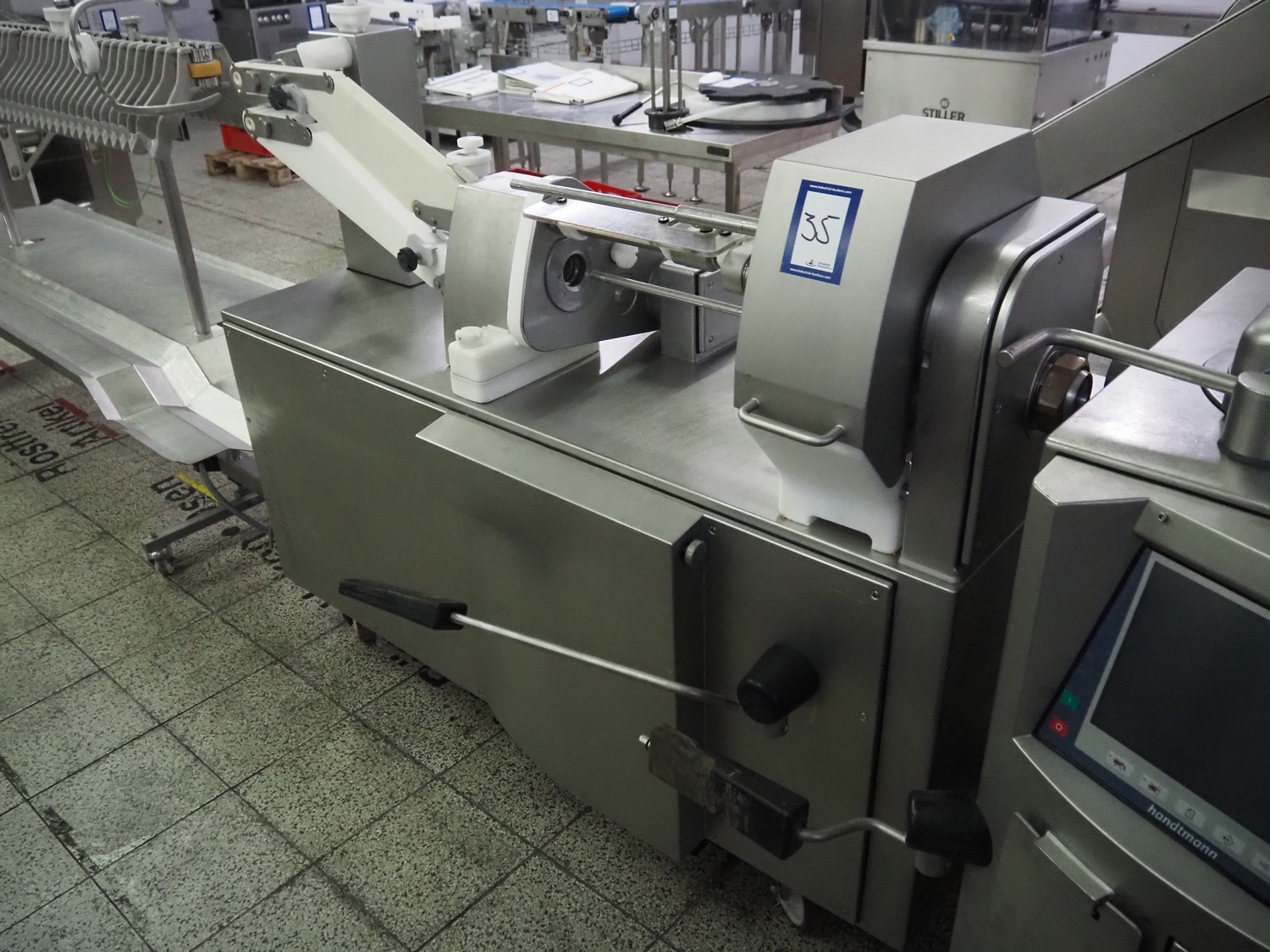 Handtmann mobile linking machine, type: 228-01, number: 16800981, year of construction: 2017, 400 V, 3 Ph, 50 Hz, 8.3 A, 5.5 kW, weight: 655 kg, dimensions: 1800 mm x 1100 mm x 1500 mm.