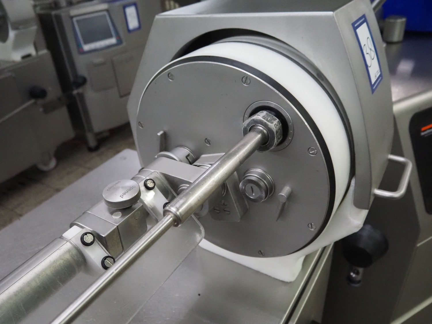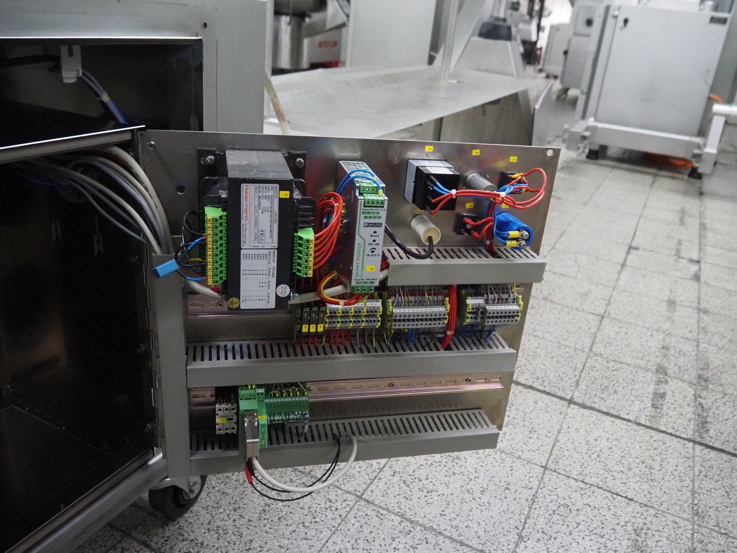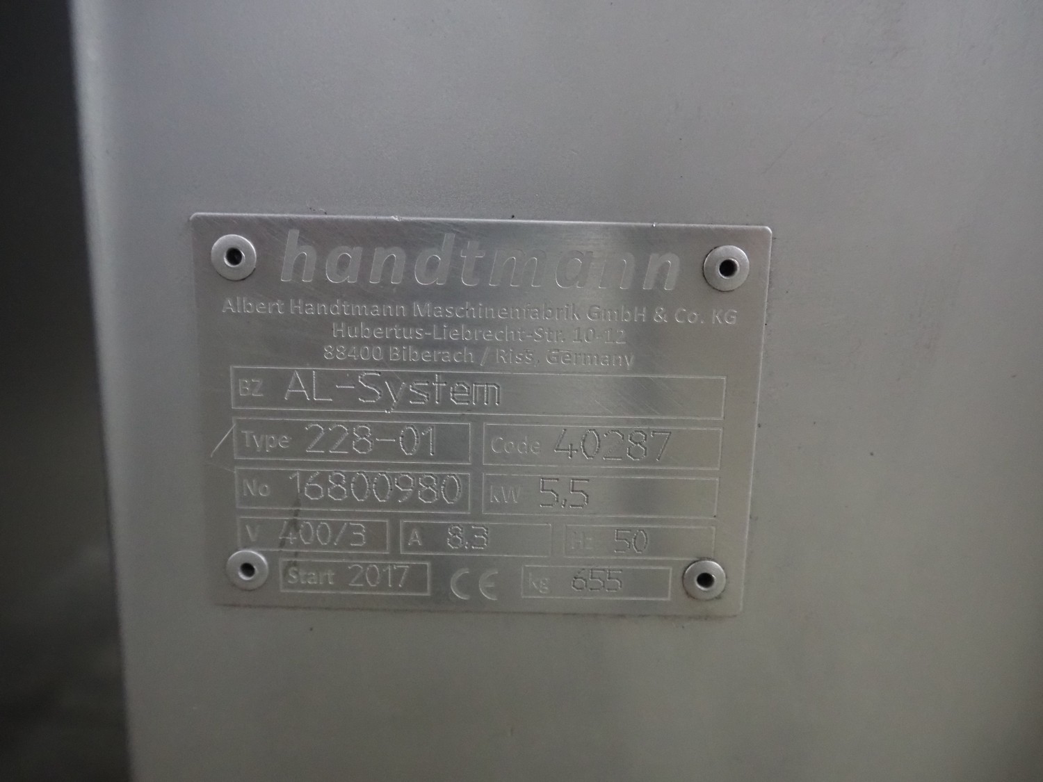Handtmann mobile linking machine, type: 228-01, number: 16800980, year of construction: 2017, 400 V, 3 Ph, 50 Hz, 8.3 A, 5.5 kW, weight: 655 kg, dimensions: 1800 mm x 900 mm x 1500 mm.