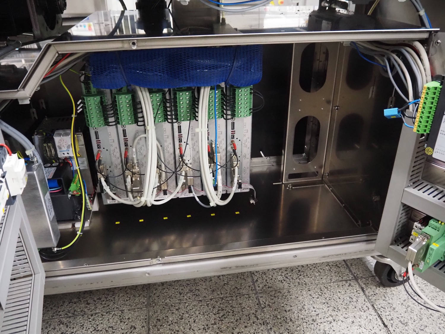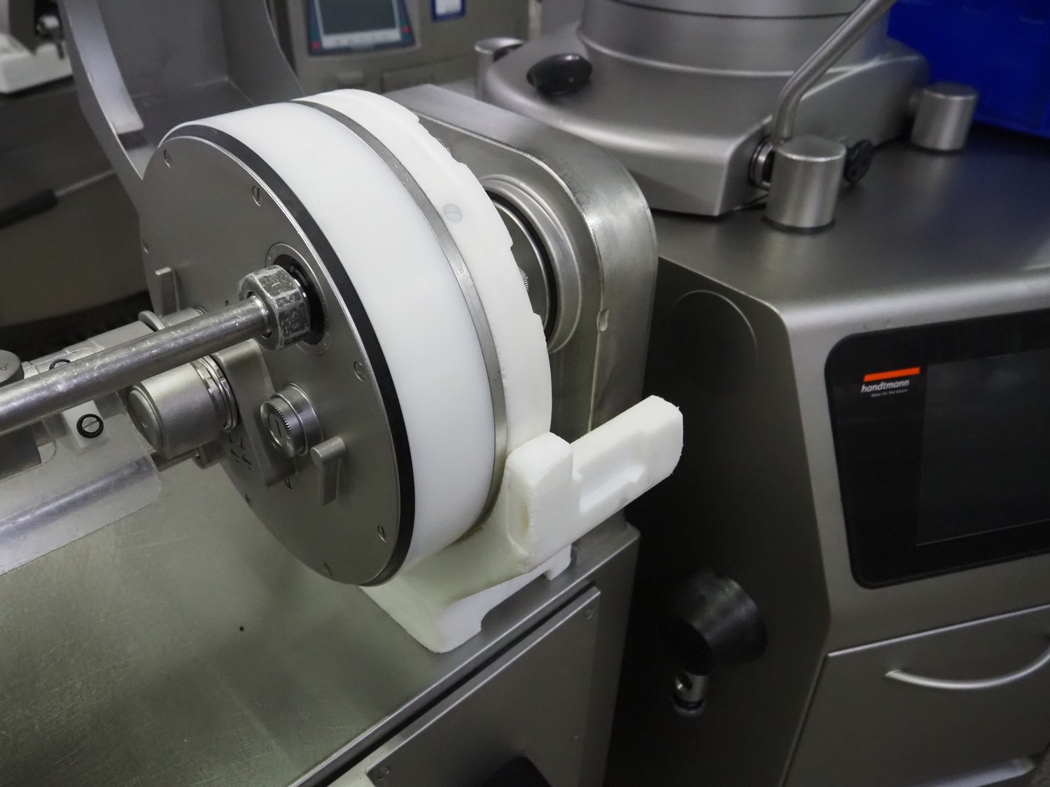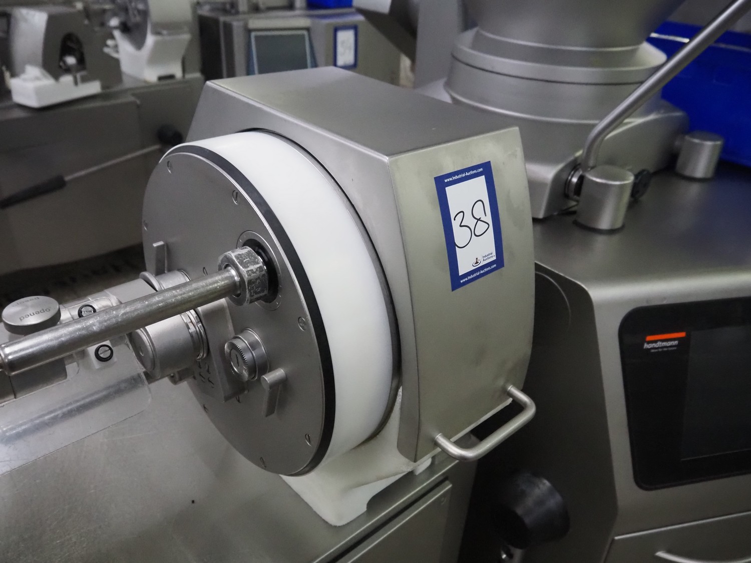 Handtmann mobile linking machine, type: 228-01, number: 16800980, year of construction: 2017, 400 V, 3 Ph, 50 Hz, 8.3 A, 5.5 kW, weight: 655 kg, dimensions: 1800 mm x 900 mm x 1500 mm.