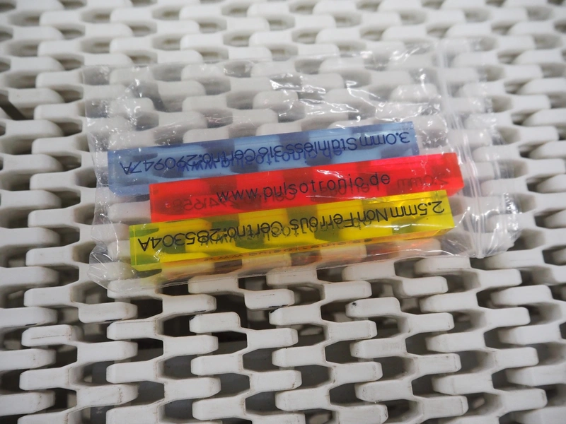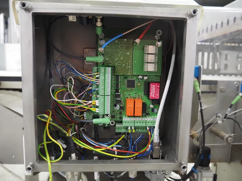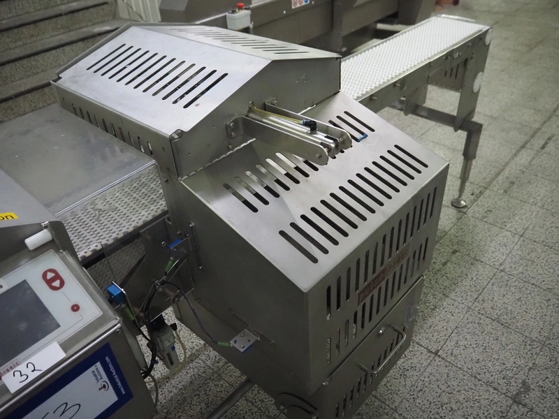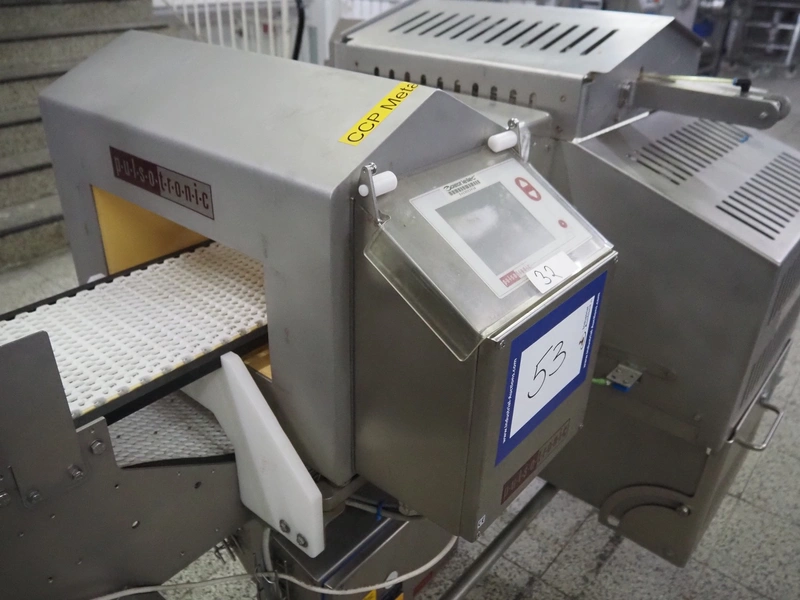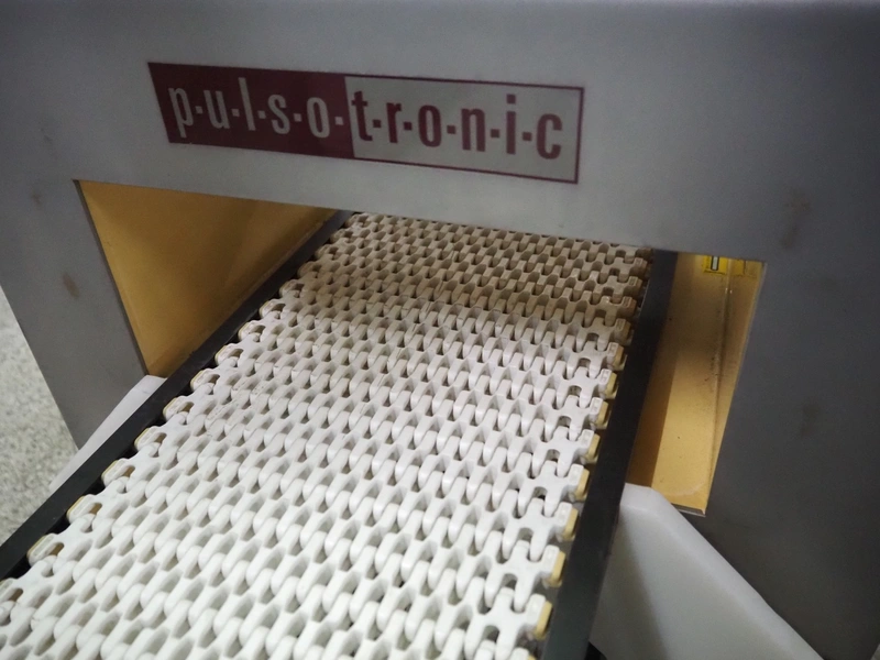 Pulsotronic metal detector with rejector, type: M-Pulse 2 BD-HD 350x150 LPW MFT, serial number: 90007273, year of construction: 2018, 115/230 VAC, 50-60 Hz, plastic mesh belt, belt width: 240 mm, clearance: 350 mm x 115 mm, total dimensions: 3500 mm x 1000 mm x 1440 mm.