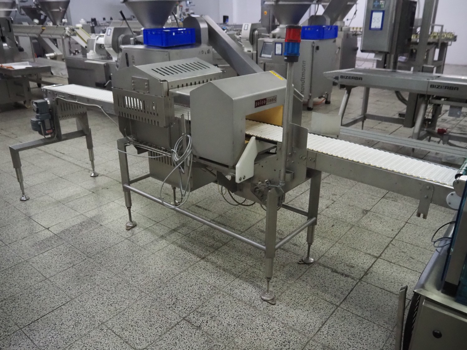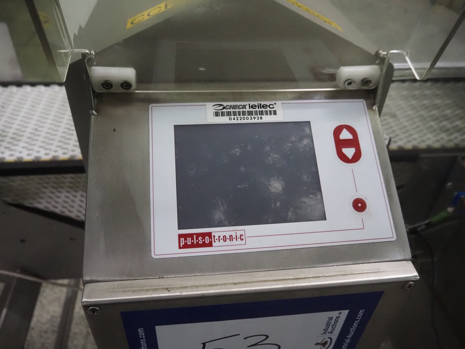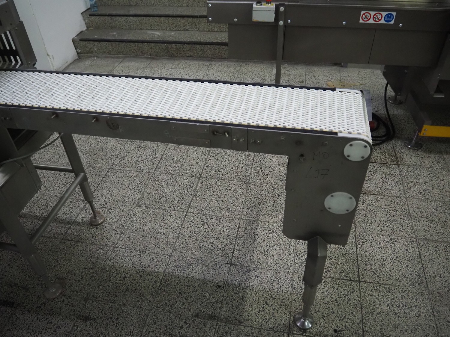 Pulsotronic metal detector with rejector, type: M-Pulse 2 BD-HD 350x150 LPW MFT, serial number: 90007273, year of construction: 2018, 115/230 VAC, 50-60 Hz, plastic mesh belt, belt width: 240 mm, clearance: 350 mm x 115 mm, total dimensions: 3500 mm x 1000 mm x 1440 mm.