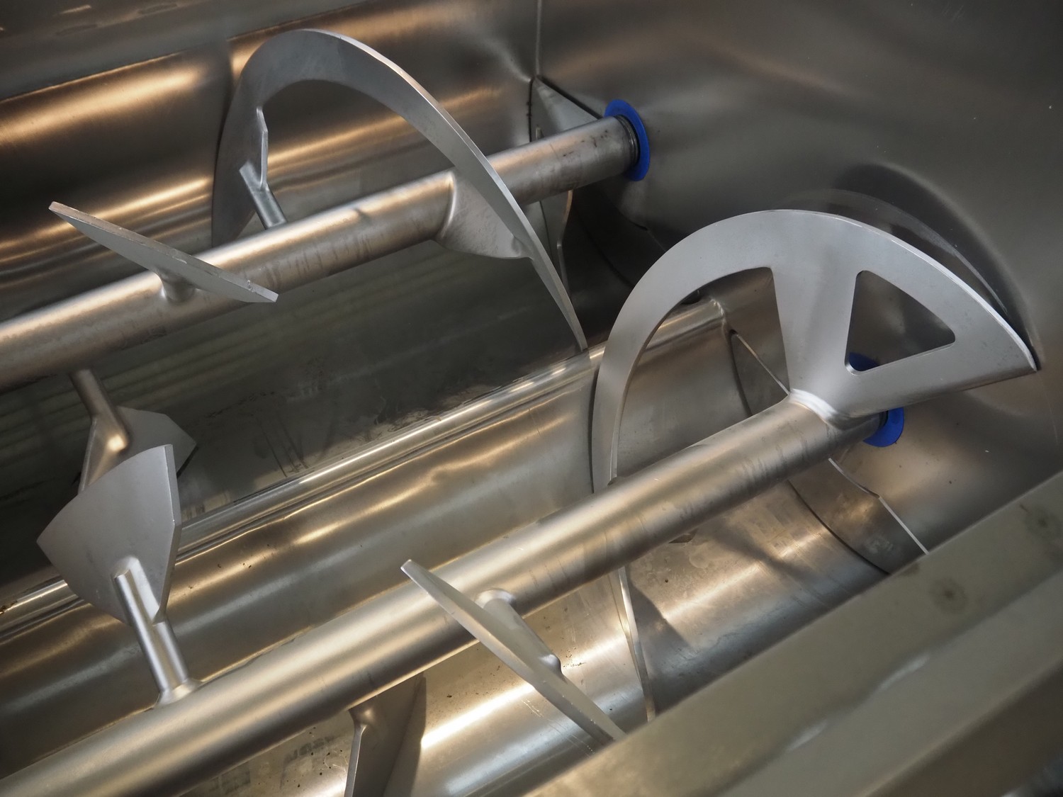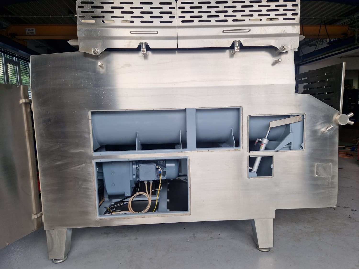 Seydelmann double shaft ribbon mixer, type: MR 2500, serial number: S6-02500-0739-18, year of construction: 2018, 400 V, 50 Hz, 72 A, 37 kW, weight: 3500 kg, volume: 2500 liter, dimensions: 3400 mm x 2100 mm x 2600 mm.