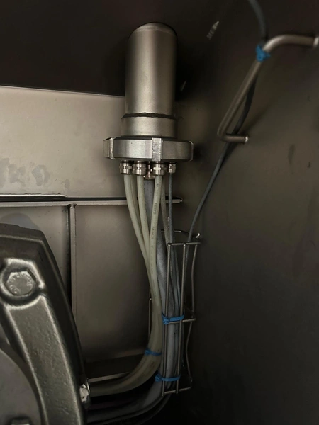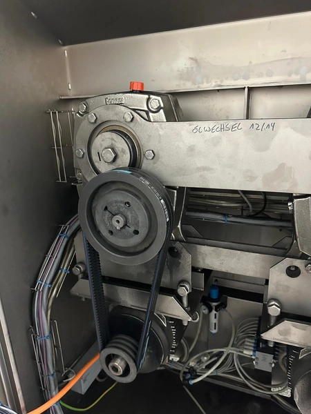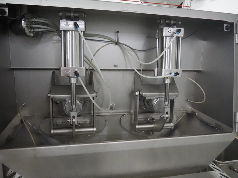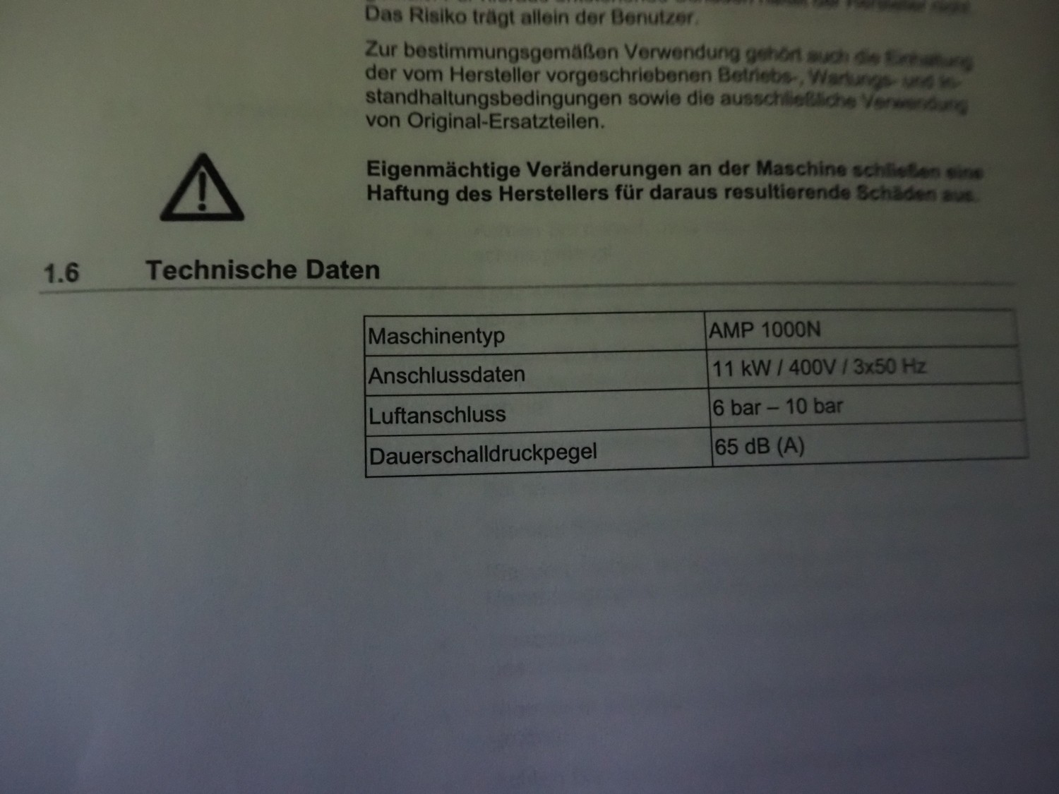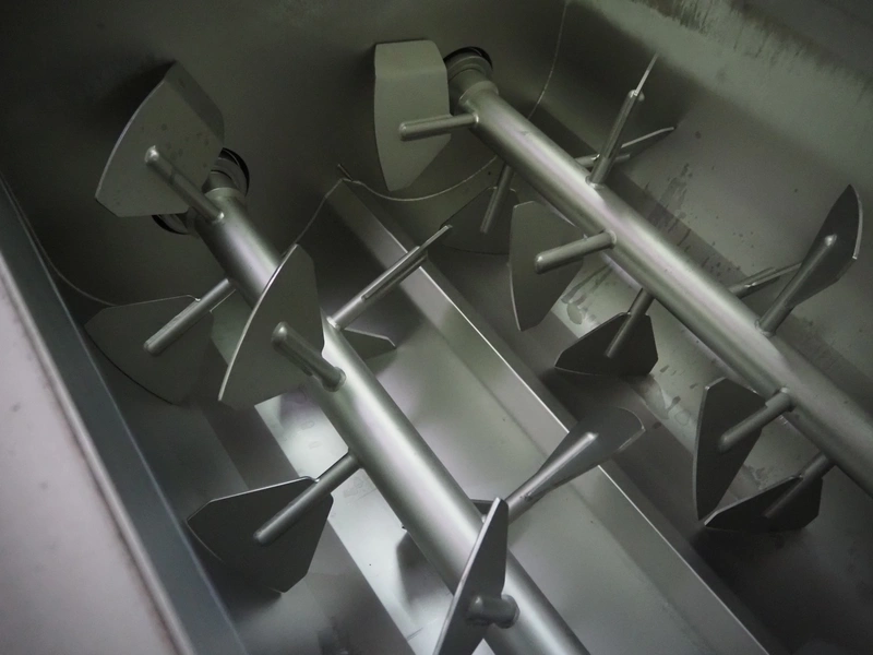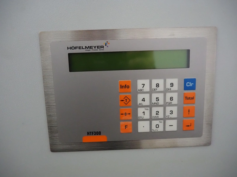 Alco food machines GmbH double shaft paddle mixer on weighing cells, type: AMP 1000N, 01602224, year of construction: 2013, 400 V, 3 Ph, 50 Hz, 50 A, 11 kW, volume: 1000 liter, weight: 1600 kg, total dimensions: 3500 mm x 1200 mm x 2400 mm.