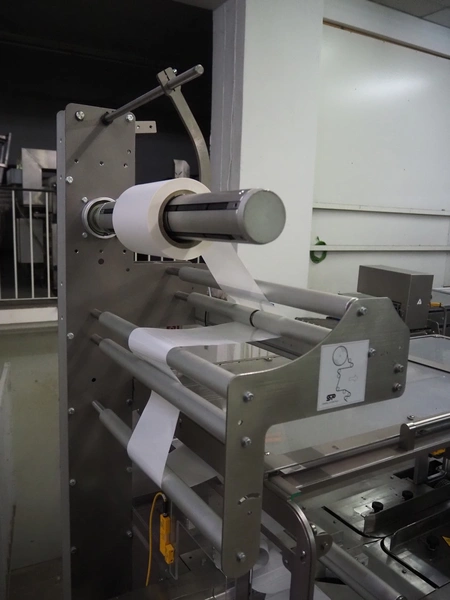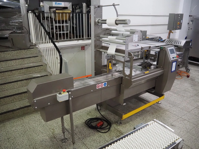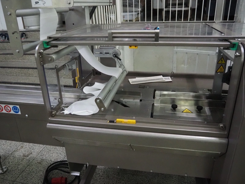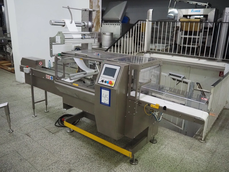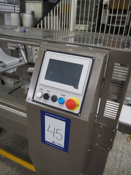 General System Pack flowpacker, type: GSP 45 S, serial number: G3407, year of construction: 2021, 400 V, 3 Ph, 50/60 Hz, 6 A, 3,7 kW, film width: 160 mm, weight: 550 kg, plastic belt, belt width: 200 mm, seal width: 245 mm, clearance: 200 mm x 155 mm, total dimensions: 3300 mm x 1050 mm x 1950 mm.