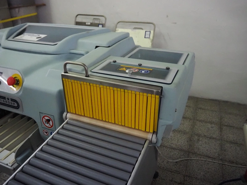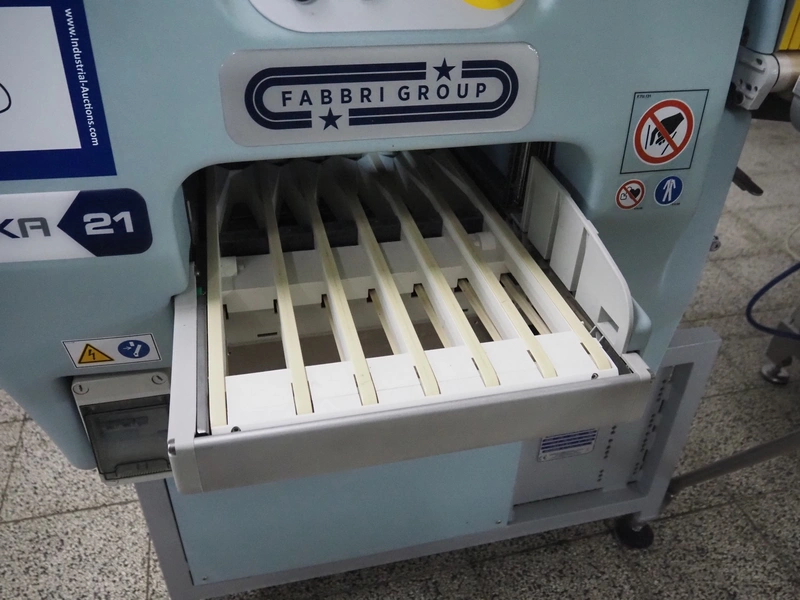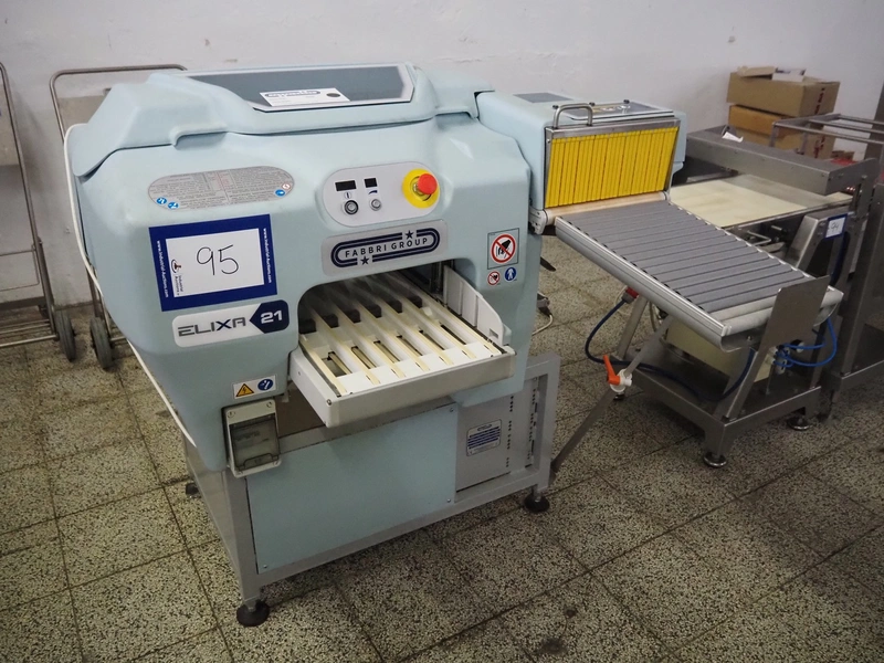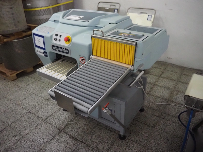 Fabri Group packaging machine, model: Elixa21-B.283.XS, serial number: 1\604, year of construction: 2016, 230 V, 1 Ph, 50/60 Hz, 8.7+1.3 A, weight: 170 kg, plastic string belt, belt width: 300 mm, plastic belt, belt width: 335 mm, minimum tray size: 120 mm x 100 mm x 10 mm, maximum tray size: 350 mm x 230 mm x 130 mm, total dimensions: 1400 mm x 1300 mm x 1300 mm.