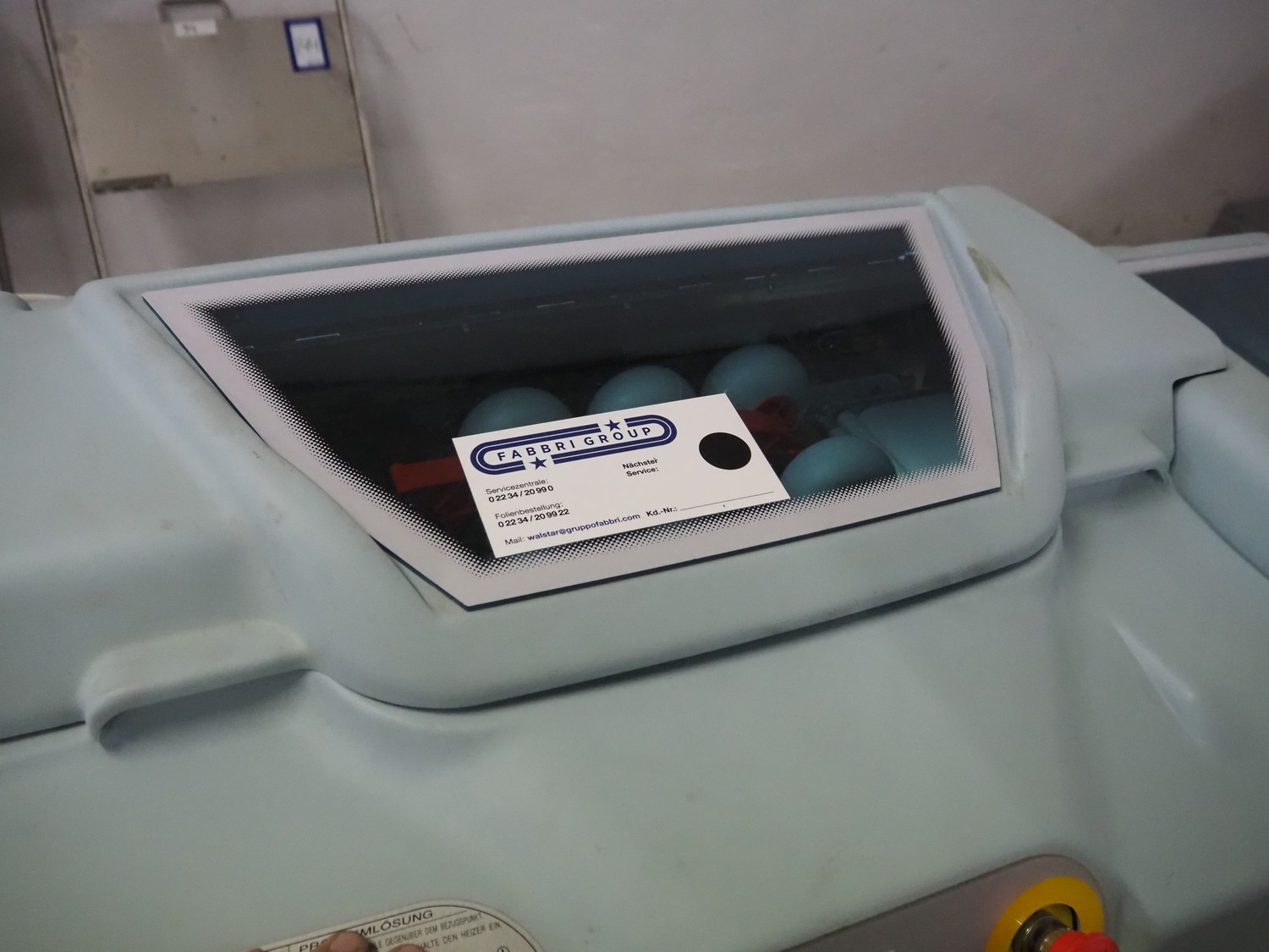 Fabri Group packaging machine, model: Elixa21-B.283.XS, serial number: 1\604, year of construction: 2016, 230 V, 1 Ph, 50/60 Hz, 8.7+1.3 A, weight: 170 kg, plastic string belt, belt width: 300 mm, plastic belt, belt width: 335 mm, minimum tray size: 120 mm x 100 mm x 10 mm, maximum tray size: 350 mm x 230 mm x 130 mm, total dimensions: 1400 mm x 1300 mm x 1300 mm.