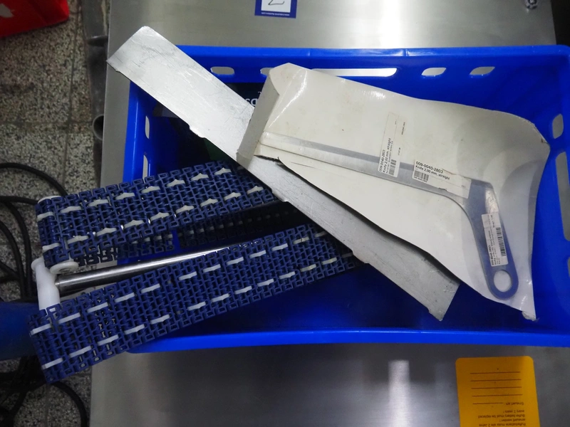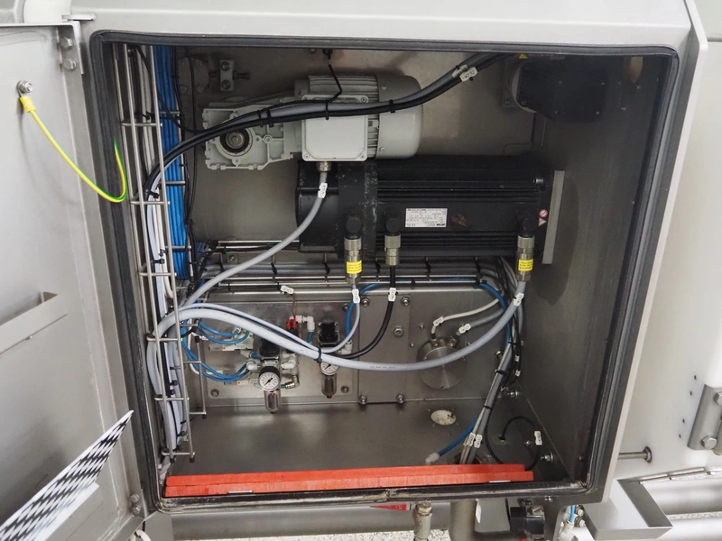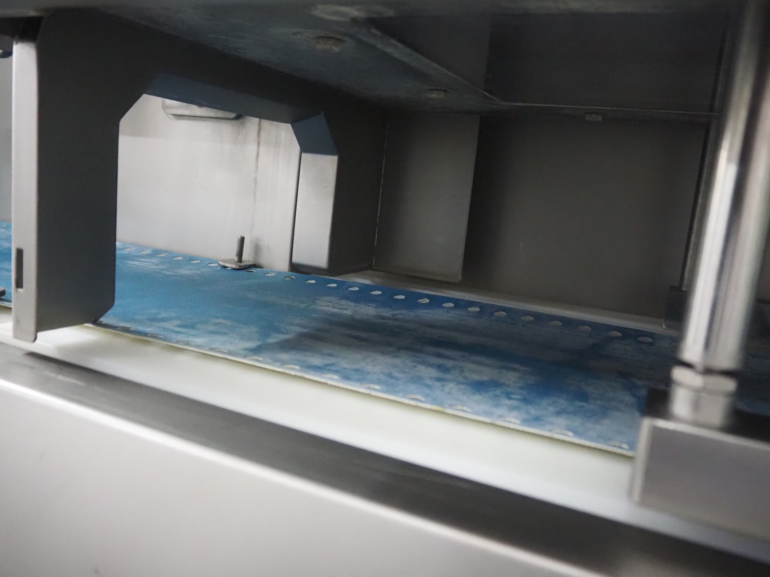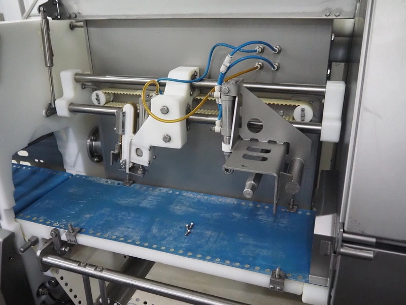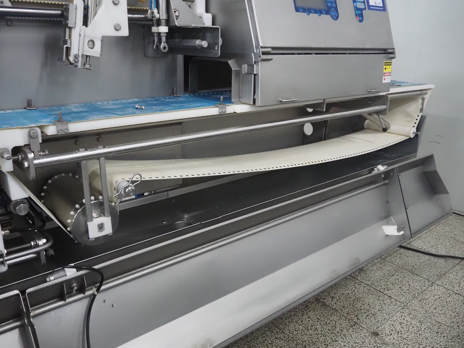 Marel optical portion cutter, type: IPM3 X300, serial number: A032977, year of construction: 2005, 380–480 V, 3 Ph, 50 Hz, 4 kW, 10 A, plastic belt, belt width: 280 mm, clearance: 255 mm x 140 mm, total dimensions: 3300 mm x 950 mm x 1600 mm. Including crate with parts.