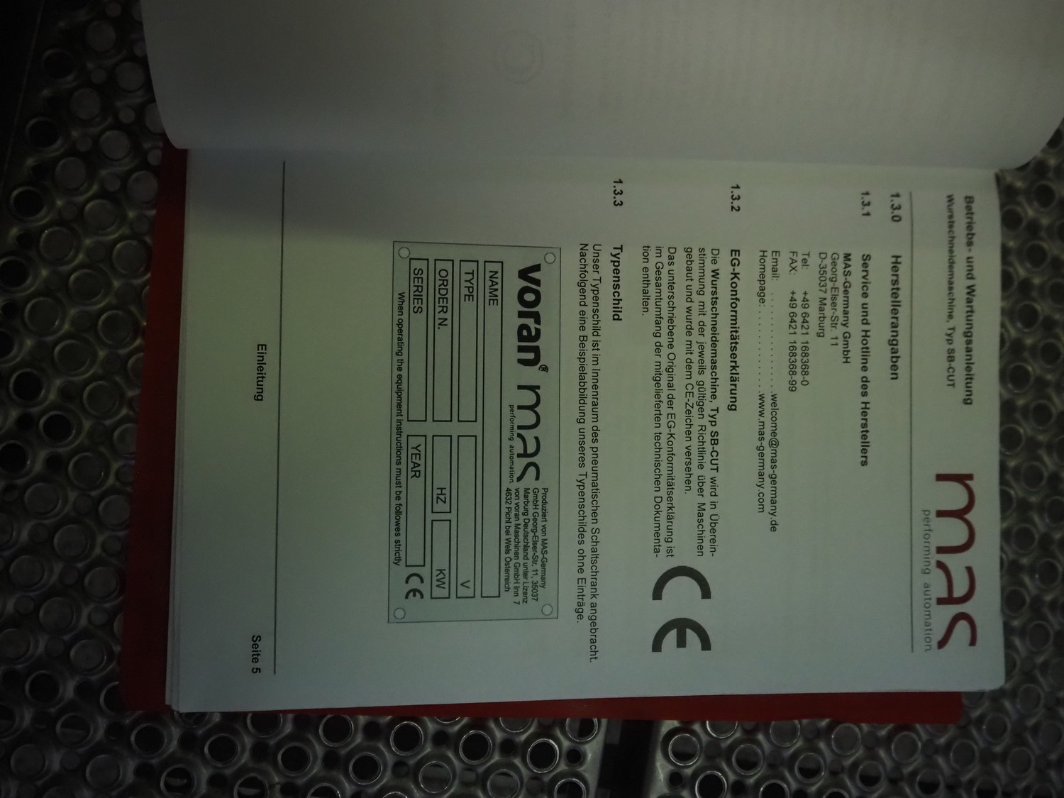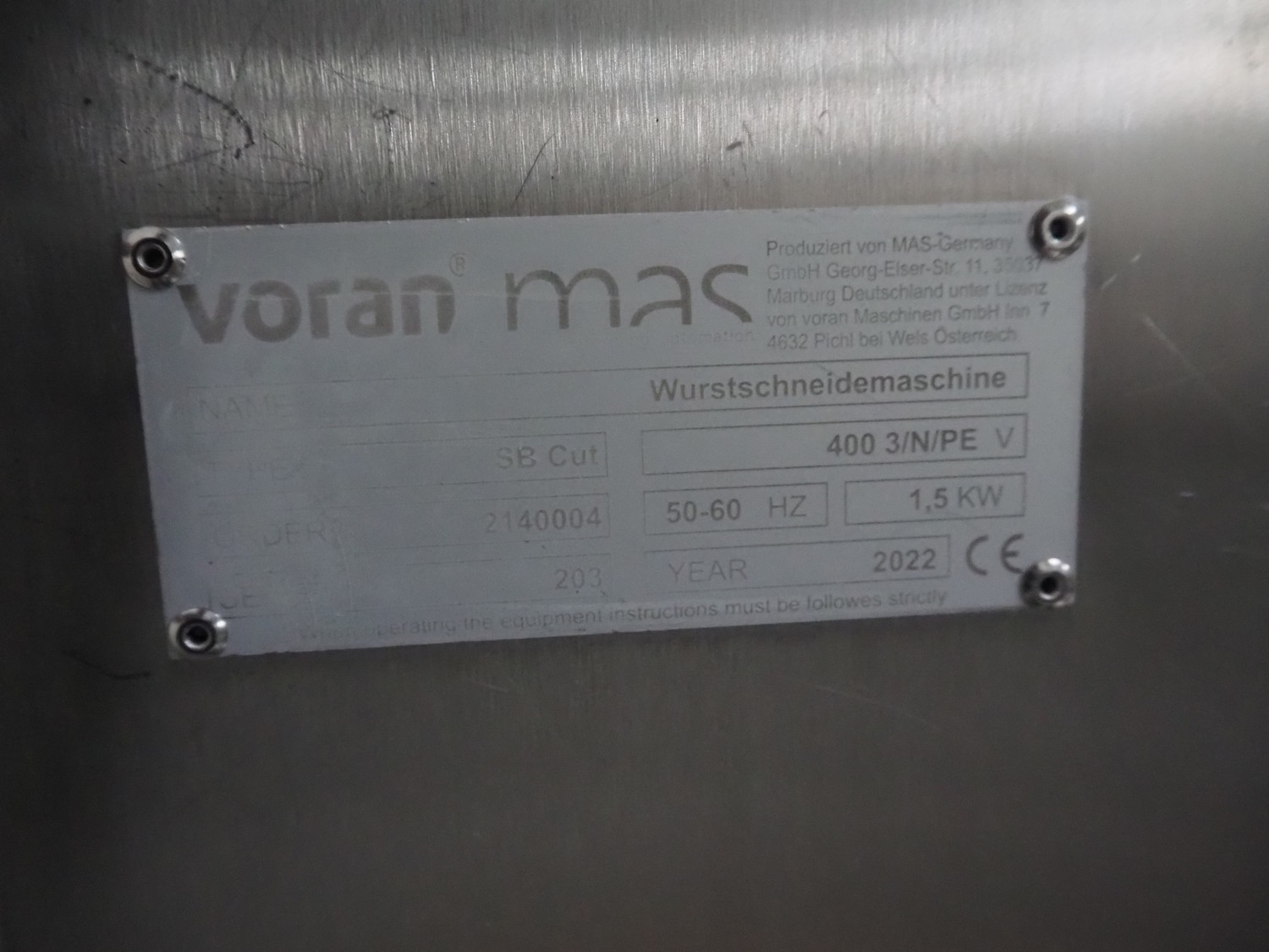 Voran / MAS-Germany GmbH sausage cutter, type: SB Cut, series: 203, order number: 2140004, year of construction: 2022, 400 V, 3 Ph, 50-60 Hz, 1.5 kW, dimensions: 1655 mm x 750 mm x 1440 mm.