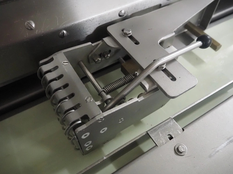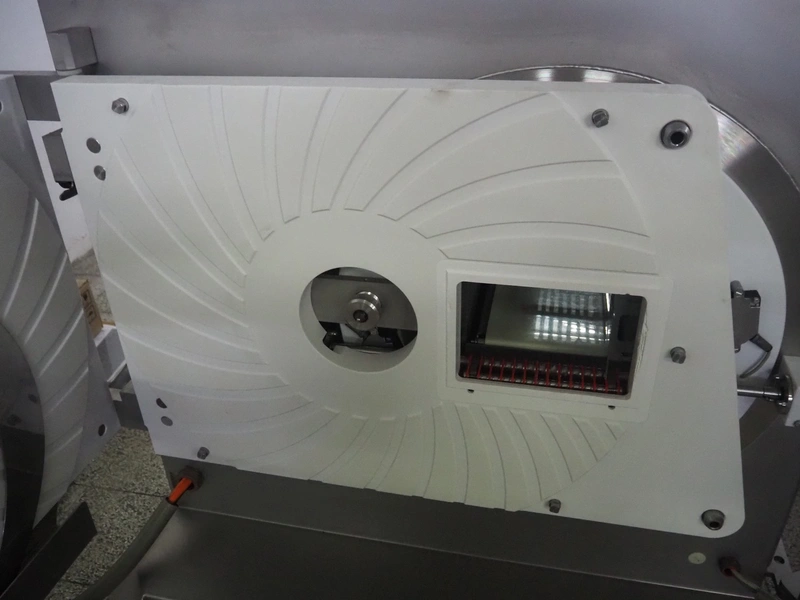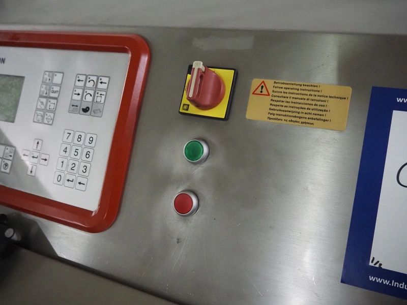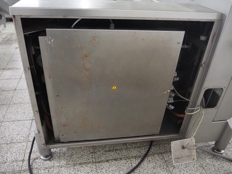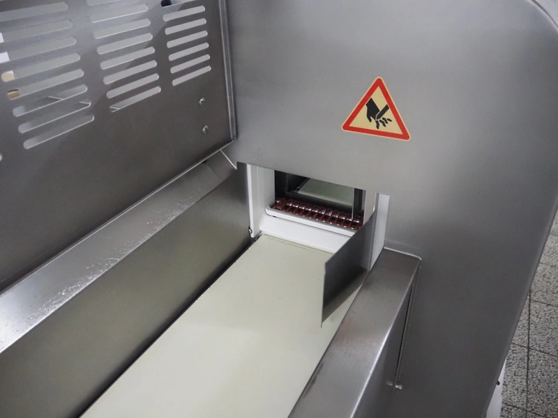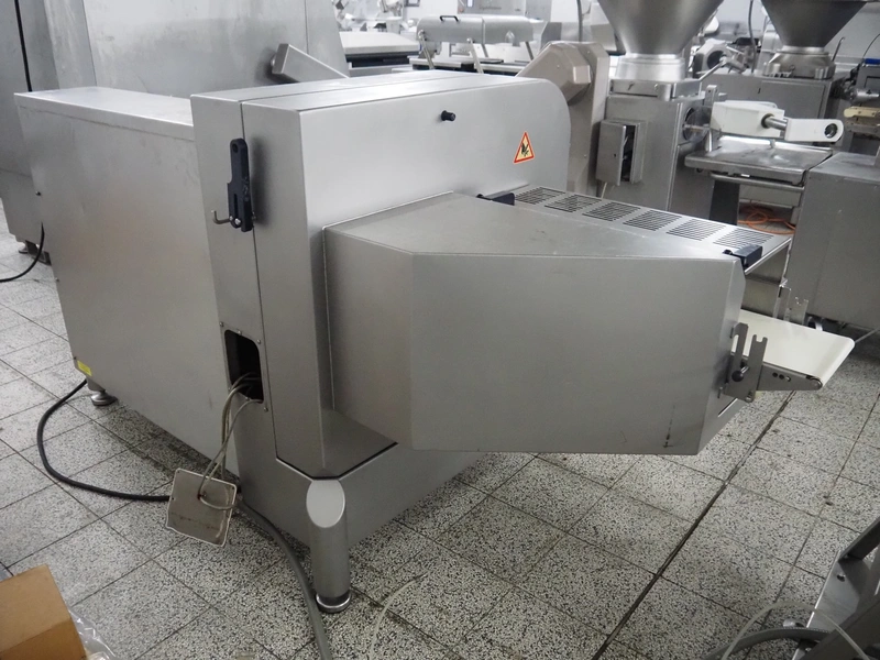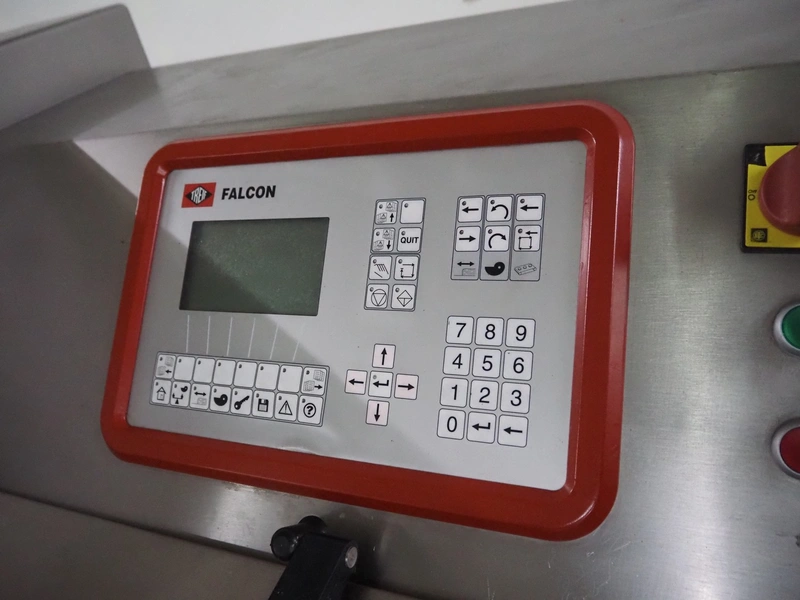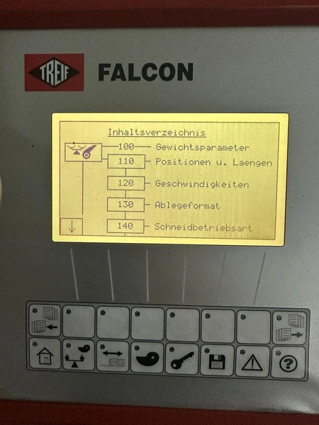 Treif Maschinenbau GmbH slicer, model: Falcon, serial number: 460000.61720, year of construction: 2002, 400/480 V, 3 Ph, 50/60 Hz, 9.6/11.5 A, 8 kW, weight: 600 kg, plastic belt, belt width: 255 mm, clearance: 1950 mm x 150 mm, total dimensions: 1200 mm x 800 mm x 1000 mm. Including pallet with parts.
