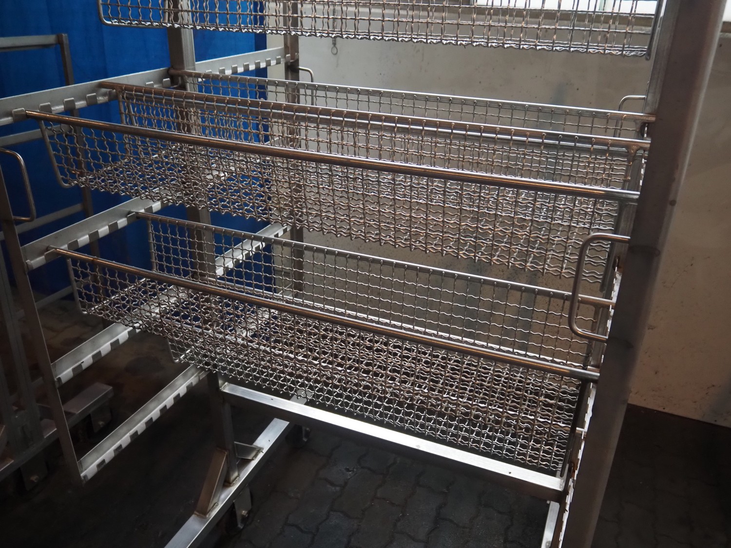 S/s smoke trolley, 6 floors, floor dimensions: (6x) 1000 mm x 990 mm, basket dimensions: (6x) 1000 mm x 165 mm x 140 mm, total dimensions: 1050 mm x 1000 mm x 2000 mm.
